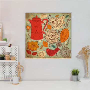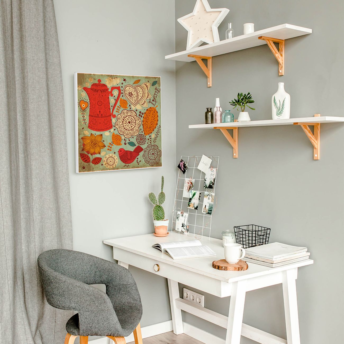Motiv Indischer Kaffee Nr. 10768 Größe: 50x50x2cm BxHxT Gewicht: ca. 1,5 kg Material: Stahl weiß lackiert, Premiumfolie mit Schutzlaminat Magnete: für Dekomagnete geeignet beschreibbar: Nein Format: Quadratisch Zubehör: 4 Magnete, Schrauben und Dübel