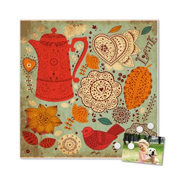 Die banjado Design Magnettafel mit Motiv Motiv Indischer Kaffee bringt Ordnung in Ihr Zettelchaos. Fotos, Termine, Notizen oder Rezepte lassen Sich hier stilvoll mit Magneten ordnen, Sie behalten alles im Blick. An der Pinnwand halten alle handelsüblichen Magnete. Mit dieser Pinnwand aus Metall haben Sie auch ohne Notizen und Magnete ein schönes Dekoelement. Das Quadratische Format bietet Ihnen ausreichend Platz um alle wichtigen Informationen im Blick zu behalten.