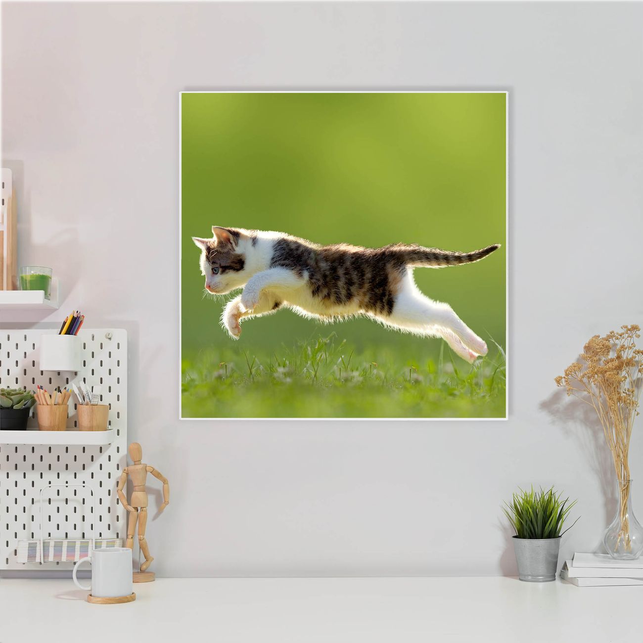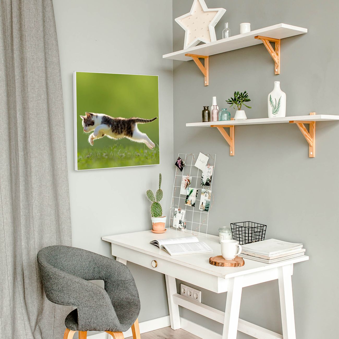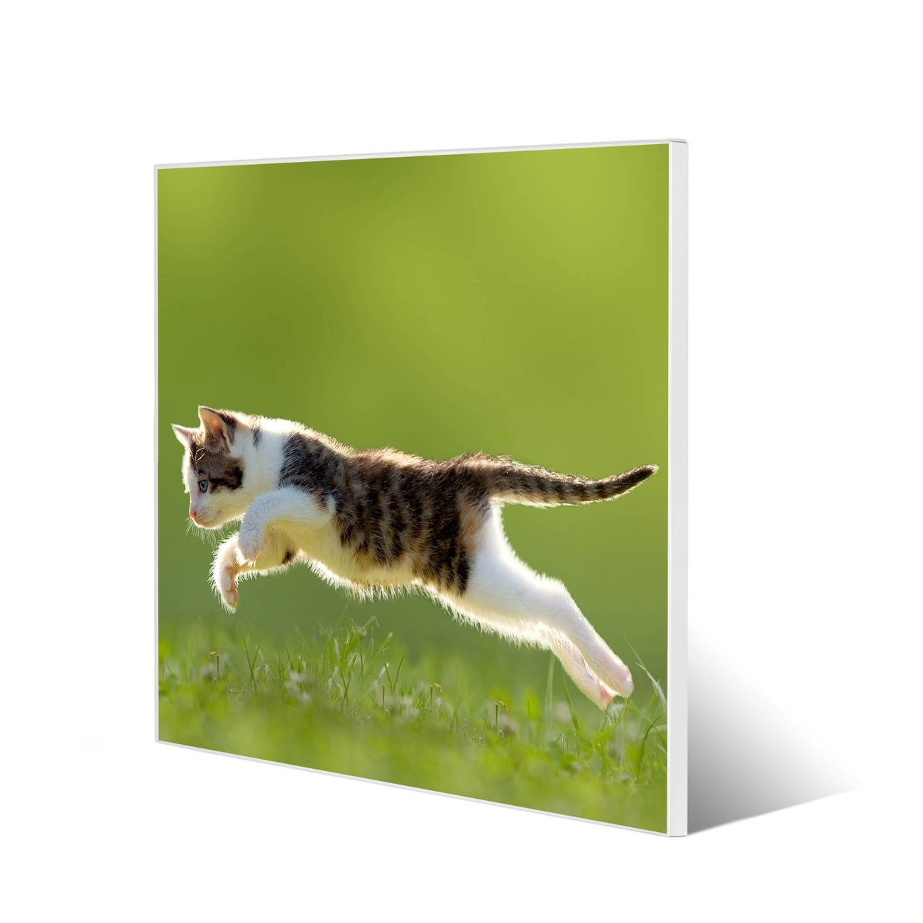 Motiv Jagende Katze Nr. 10729 Größe: 50x50x2cm BxHxT Gewicht: ca. 1,5 kg Material: Stahl weiß lackiert, Premiumfolie mit Schutzlaminat Magnete: für Dekomagnete geeignet beschreibbar: Nein Format: Quadratisch Zubehör: 4 Magnete, Schrauben und Dübel