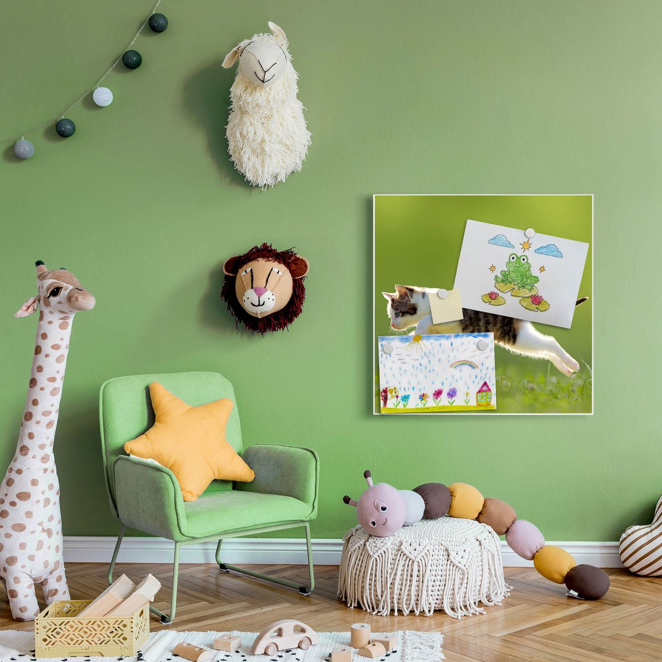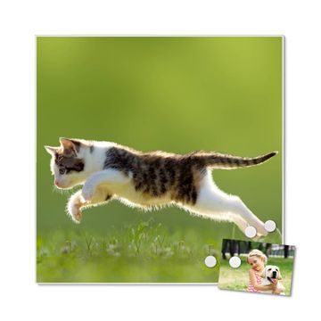Die banjado Design Magnettafel mit Motiv Motiv Jagende Katze bringt Ordnung in Ihr Zettelchaos. Fotos, Termine, Notizen oder Rezepte lassen Sich hier stilvoll mit Magneten ordnen, Sie behalten alles im Blick. An der Pinnwand halten alle handelsüblichen Magnete. Mit dieser Pinnwand aus Metall haben Sie auch ohne Notizen und Magnete ein schönes Dekoelement. Das Quadratische Format bietet Ihnen ausreichend Platz um alle wichtigen Informationen im Blick zu behalten.