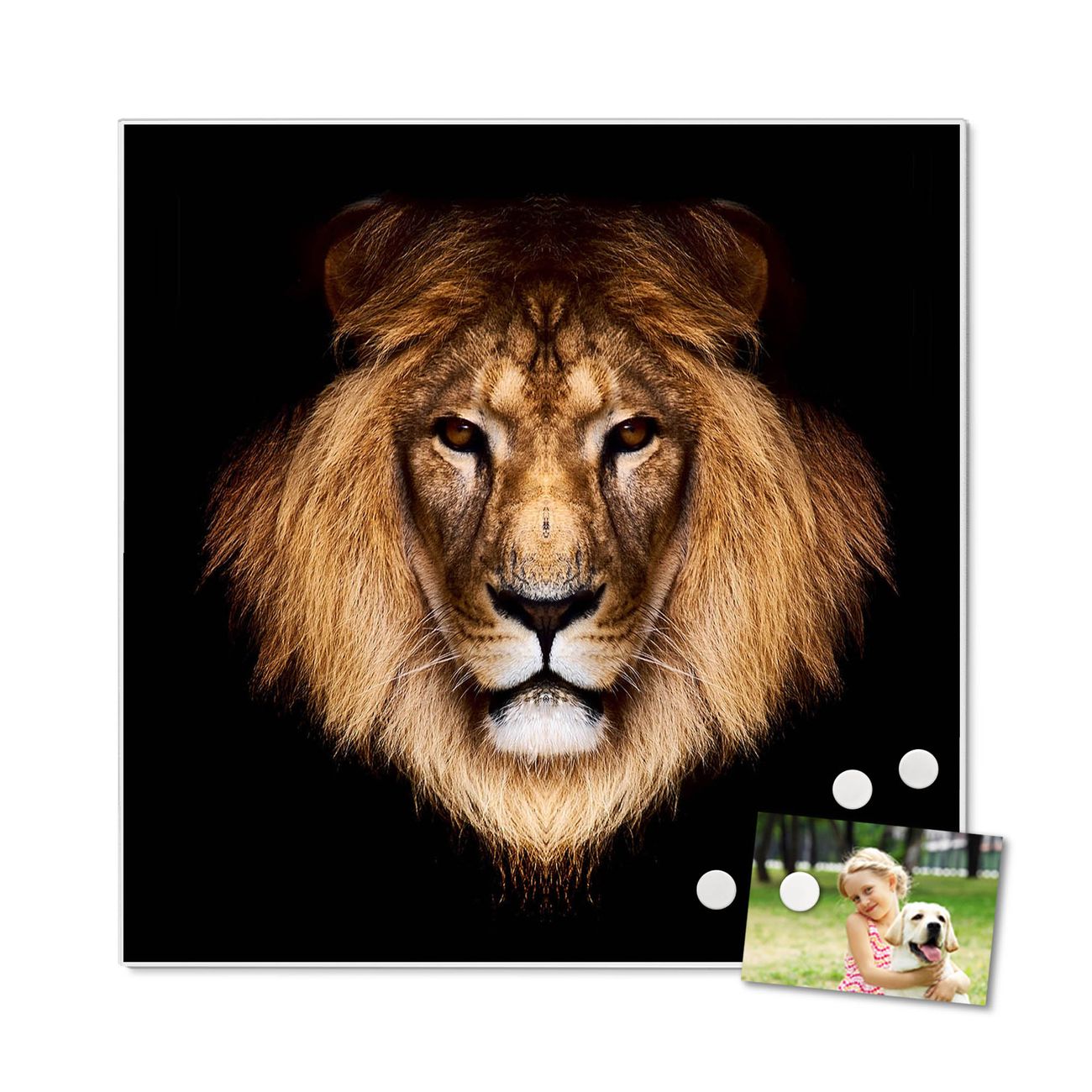 Motiv Jakob Nr. 11939 Größe: 50x50x2cm BxHxT Gewicht: ca. 1,5 kg Material: Stahl weiß lackiert, Premiumfolie mit Schutzlaminat Magnete: für Dekomagnete geeignet beschreibbar: Nein Format: Quadratisch Zubehör: 4 Magnete, Schrauben und Dübel