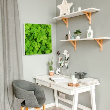 Motiv Klee Nr. 10049 Größe: 50x50x2cm BxHxT Gewicht: ca. 1,5 kg Material: Stahl weiß lackiert, Premiumfolie mit Schutzlaminat Magnete: für Dekomagnete geeignet beschreibbar: Nein Format: Quadratisch Zubehör: 4 Magnete, Schrauben und Dübel