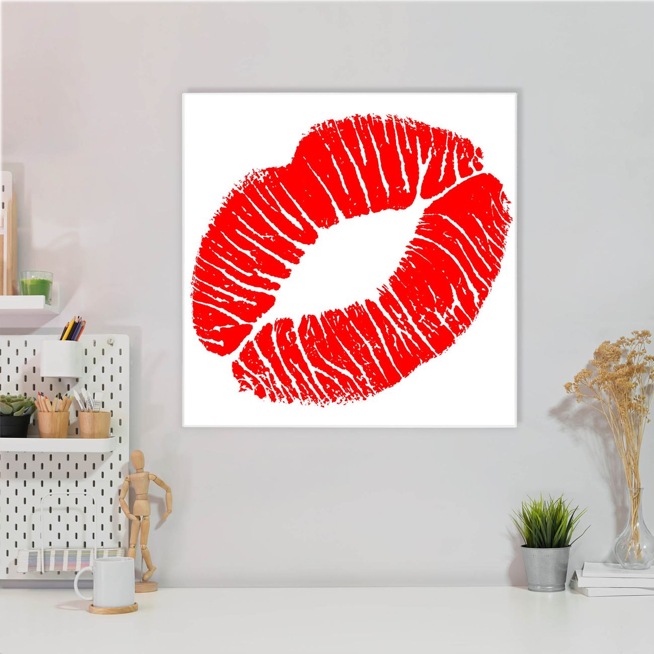 Motiv Kussmund Nr. 10264 Größe: 50x50x2cm BxHxT Gewicht: ca. 1,5 kg Material: Stahl weiß lackiert, Premiumfolie mit Schutzlaminat Magnete: für Dekomagnete geeignet beschreibbar: Nein Format: Quadratisch Zubehör: 4 Magnete, Schrauben und Dübel