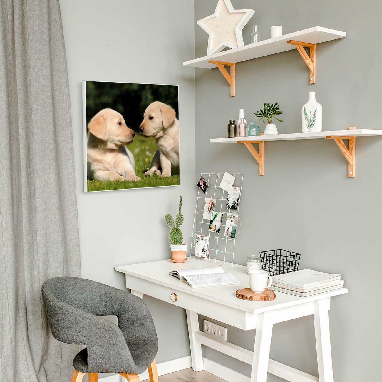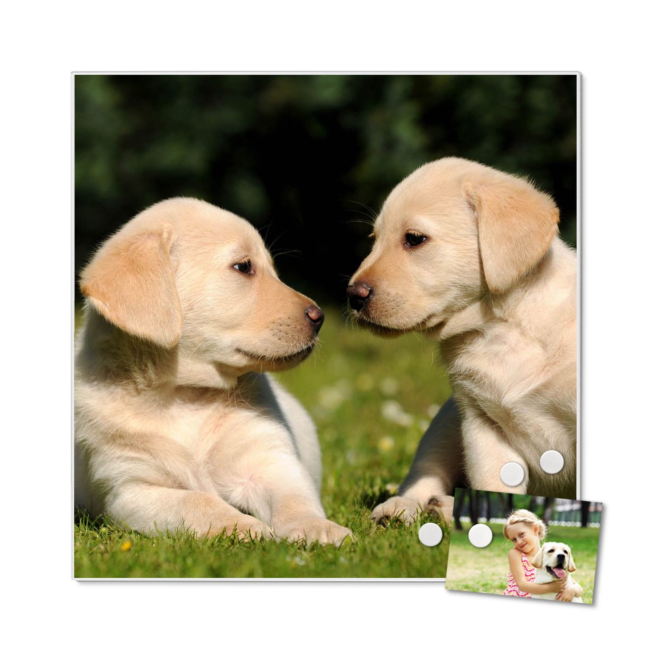 Motiv Labrador Nr. 10200 Größe: 50x50x2cm BxHxT Gewicht: ca. 1,5 kg Material: Stahl weiß lackiert, Premiumfolie mit Schutzlaminat Magnete: für Dekomagnete geeignet beschreibbar: Nein Format: Quadratisch Zubehör: 4 Magnete, Schrauben und Dübel