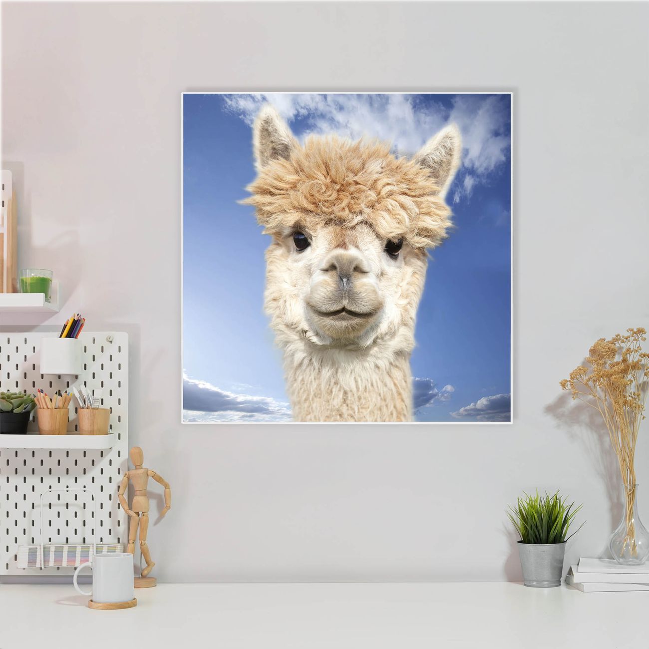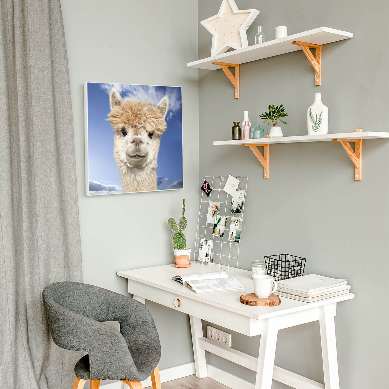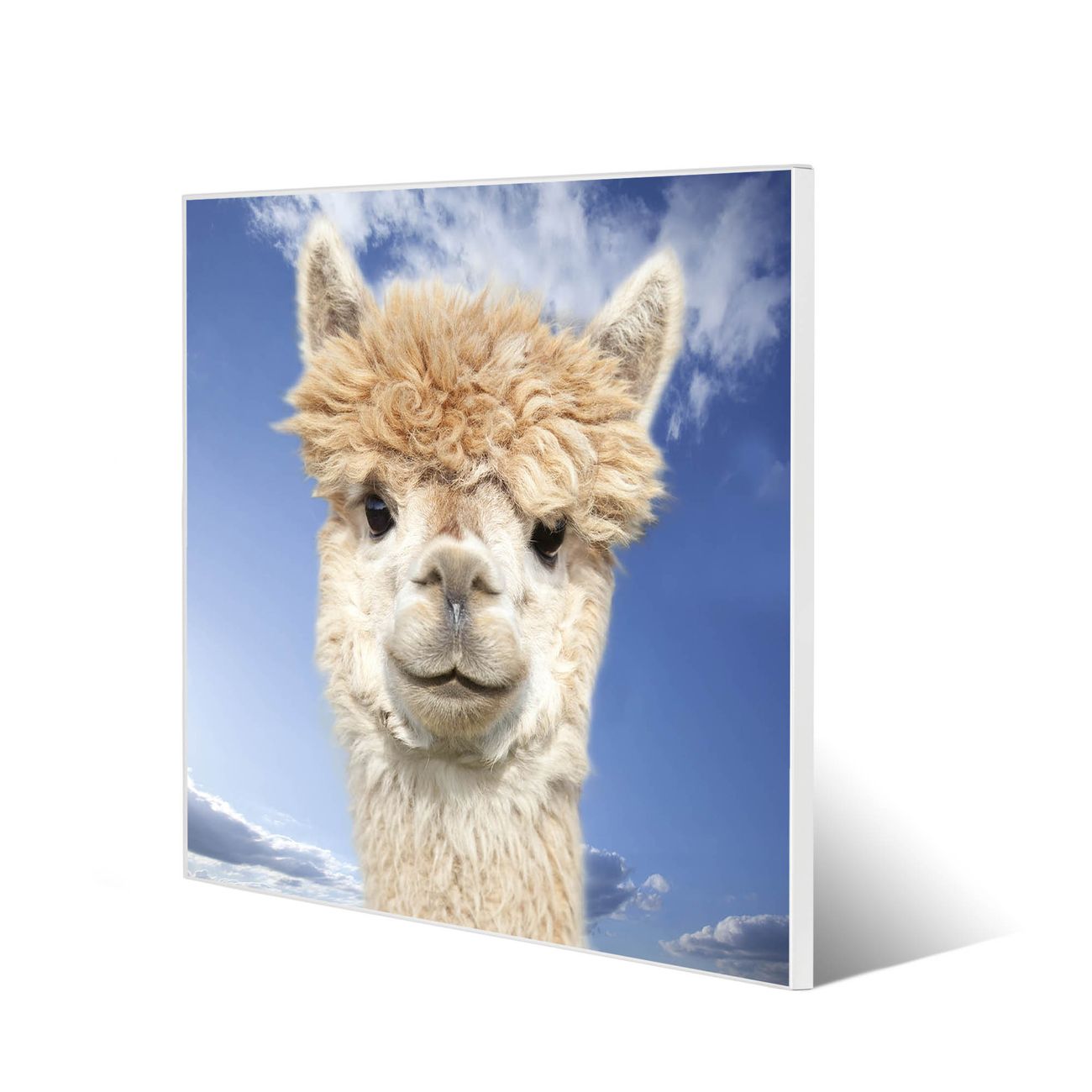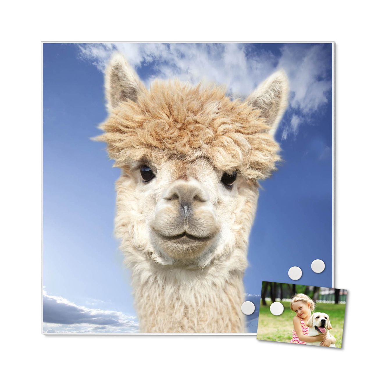 Motiv Lama Nr. 10017 Größe: 50x50x2cm BxHxT Gewicht: ca. 1,5 kg Material: Stahl weiß lackiert, Premiumfolie mit Schutzlaminat Magnete: für Dekomagnete geeignet beschreibbar: Nein Format: Quadratisch Zubehör: 4 Magnete, Schrauben und Dübel
