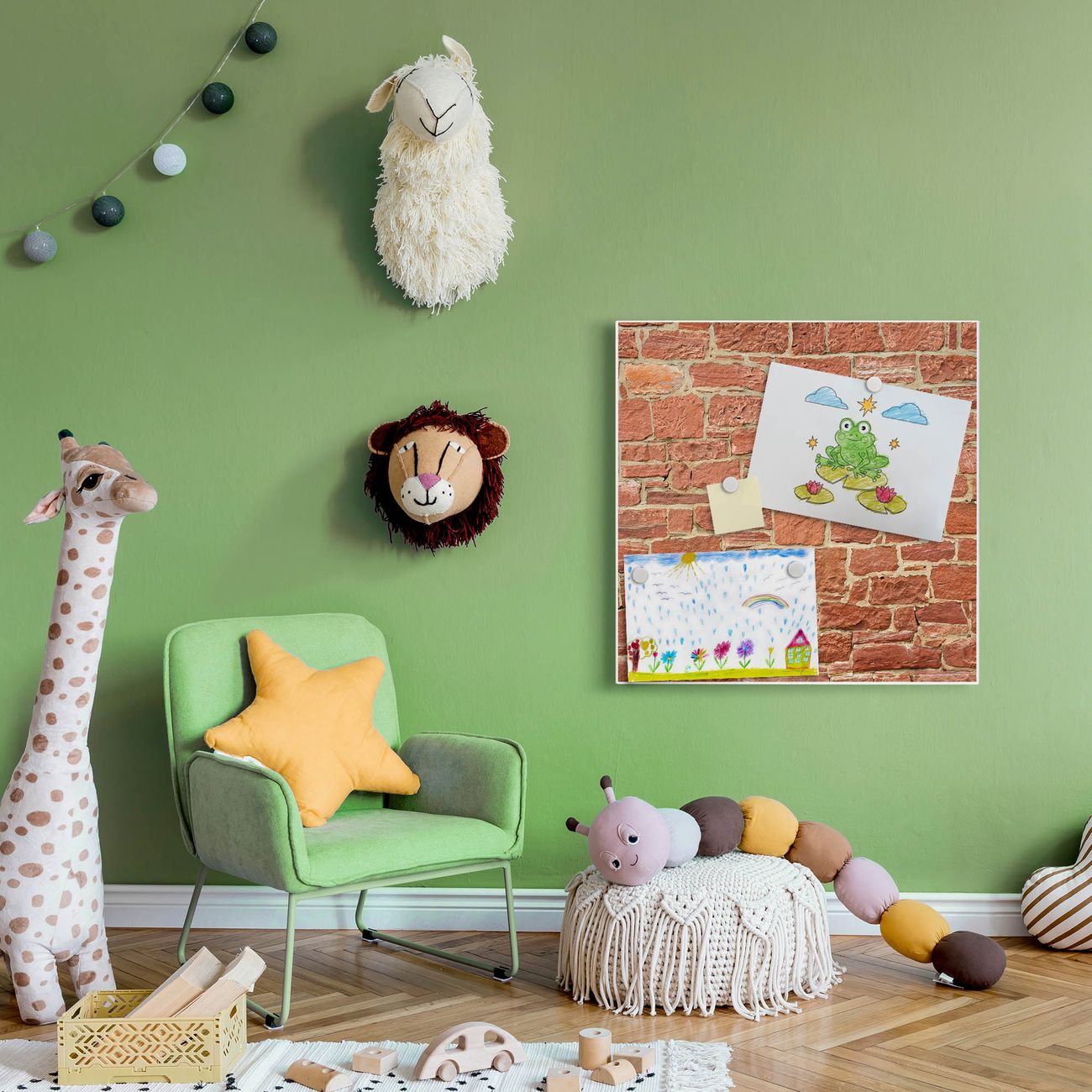 Die banjado Design Magnettafel mit Motiv Motiv Mauerwerk bringt Ordnung in Ihr Zettelchaos. Fotos, Termine, Notizen oder Rezepte lassen Sich hier stilvoll mit Magneten ordnen, Sie behalten alles im Blick. An der Pinnwand halten alle handelsüblichen Magnete. Mit dieser Pinnwand aus Metall haben Sie auch ohne Notizen und Magnete ein schönes Dekoelement. Das Quadratische Format bietet Ihnen ausreichend Platz um alle wichtigen Informationen im Blick zu behalten.