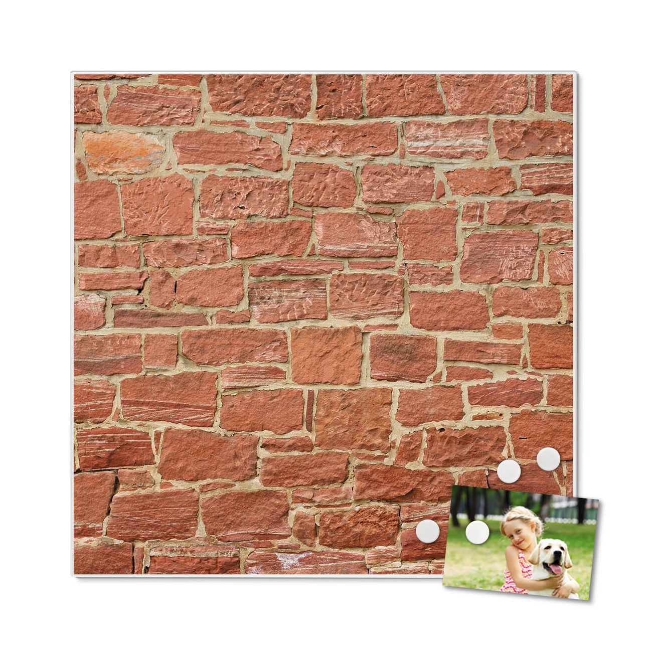 Motiv Mauerwerk Nr. 10448 Größe: 50x50x2cm BxHxT Gewicht: ca. 1,5 kg Material: Stahl weiß lackiert, Premiumfolie mit Schutzlaminat Magnete: für Dekomagnete geeignet beschreibbar: Nein Format: Quadratisch Zubehör: 4 Magnete, Schrauben und Dübel