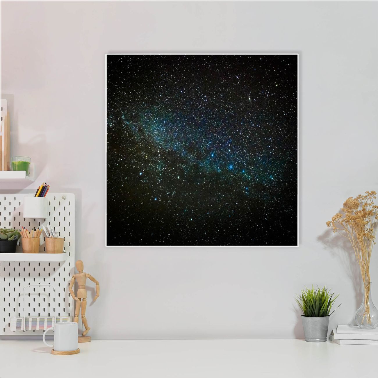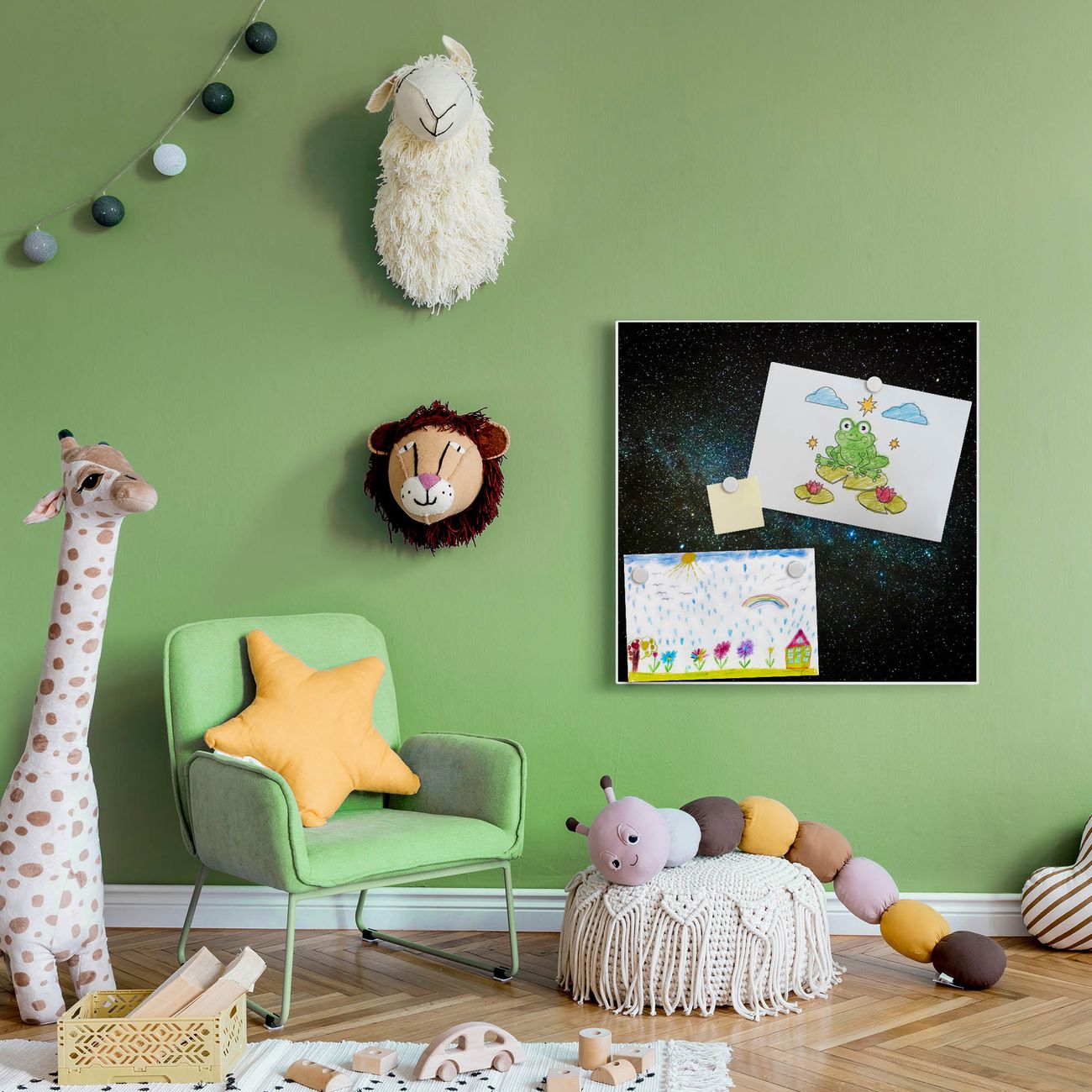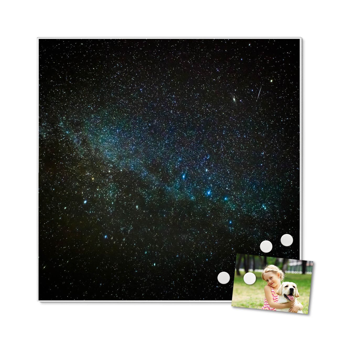 Die banjado Design Magnettafel mit Motiv Nachthimmel bringt Ordnung in Ihr Zettelchaos. Fotos, Termine, Notizen oder Rezepte lassen Sich hier stilvoll mit Magneten ordnen, Sie behalten alles im Blick. An der Pinnwand halten alle handelsüblichen Magnete. Mit dieser Pinnwand aus Metall haben Sie auch ohne Notizen und Magnete ein schönes Dekoelement. Das Quadratische Format bietet Ihnen ausreichend Platz um alle wichtigen Informationen im Blick zu behalten.