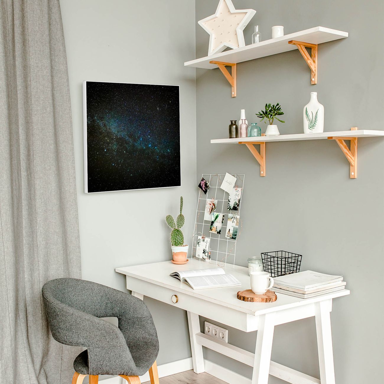 Farbe  Nachthimmel Nr. 12721 Größe  50x50x2cm BxHxT Gewicht  ca. 1,5 kg Material  Stahl weiß lackiert, Premiumfolie mit Schutzlaminat Magnete  für Deko- und Neodymmagnete geeignet beschreibbar  Nein Format  Quadratisch Zubehör  4 Magnete, Schrauben und Dübel