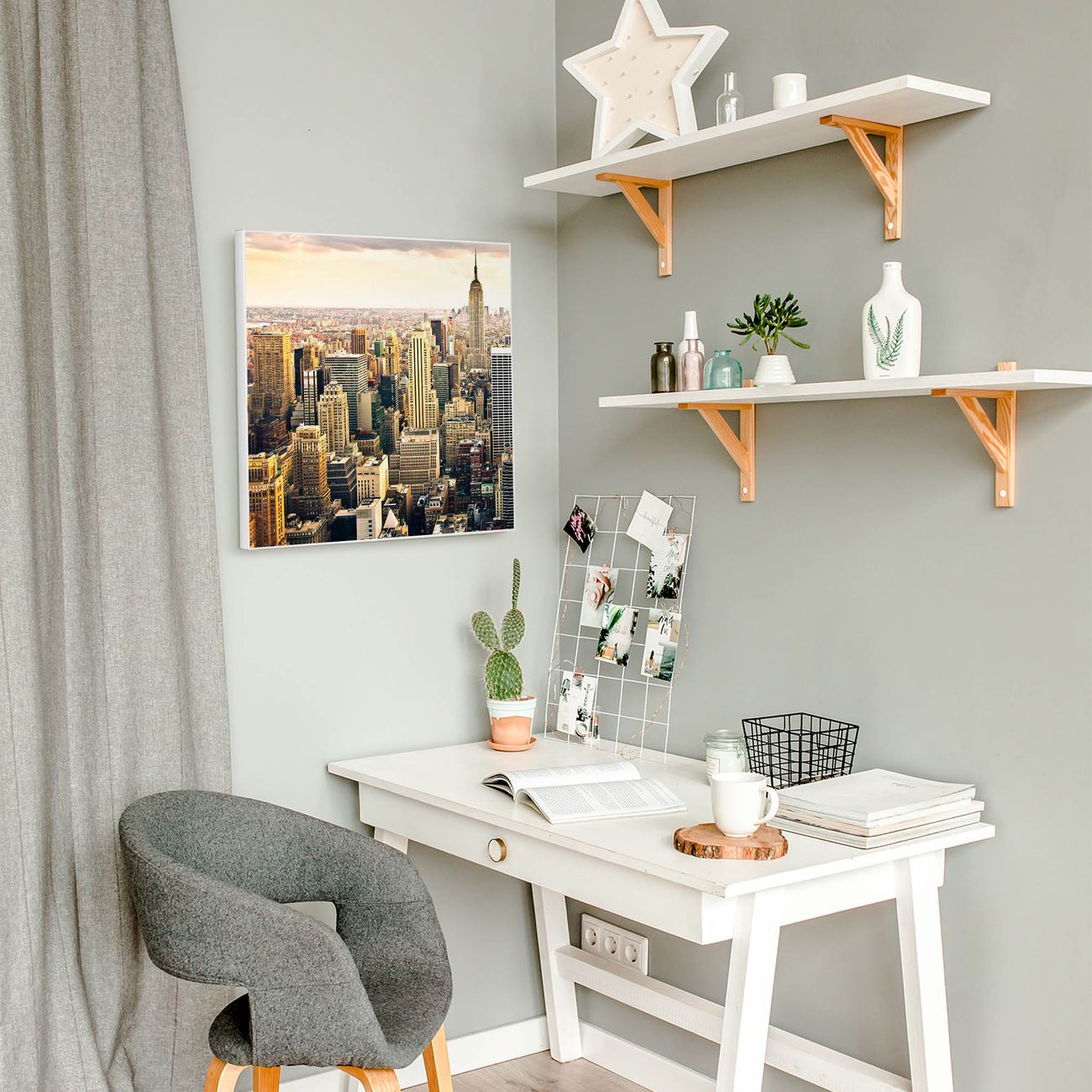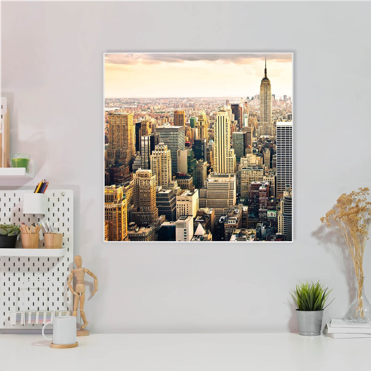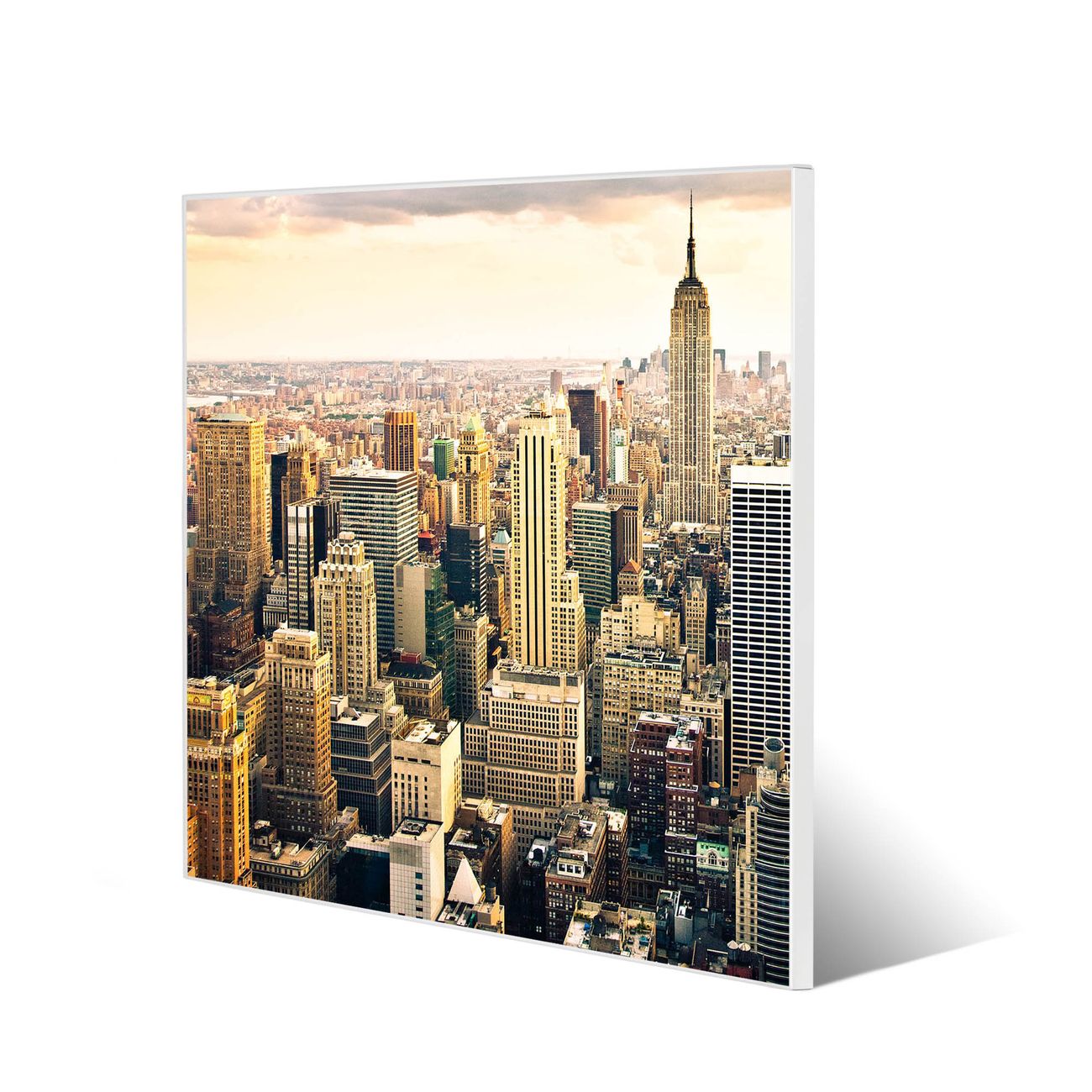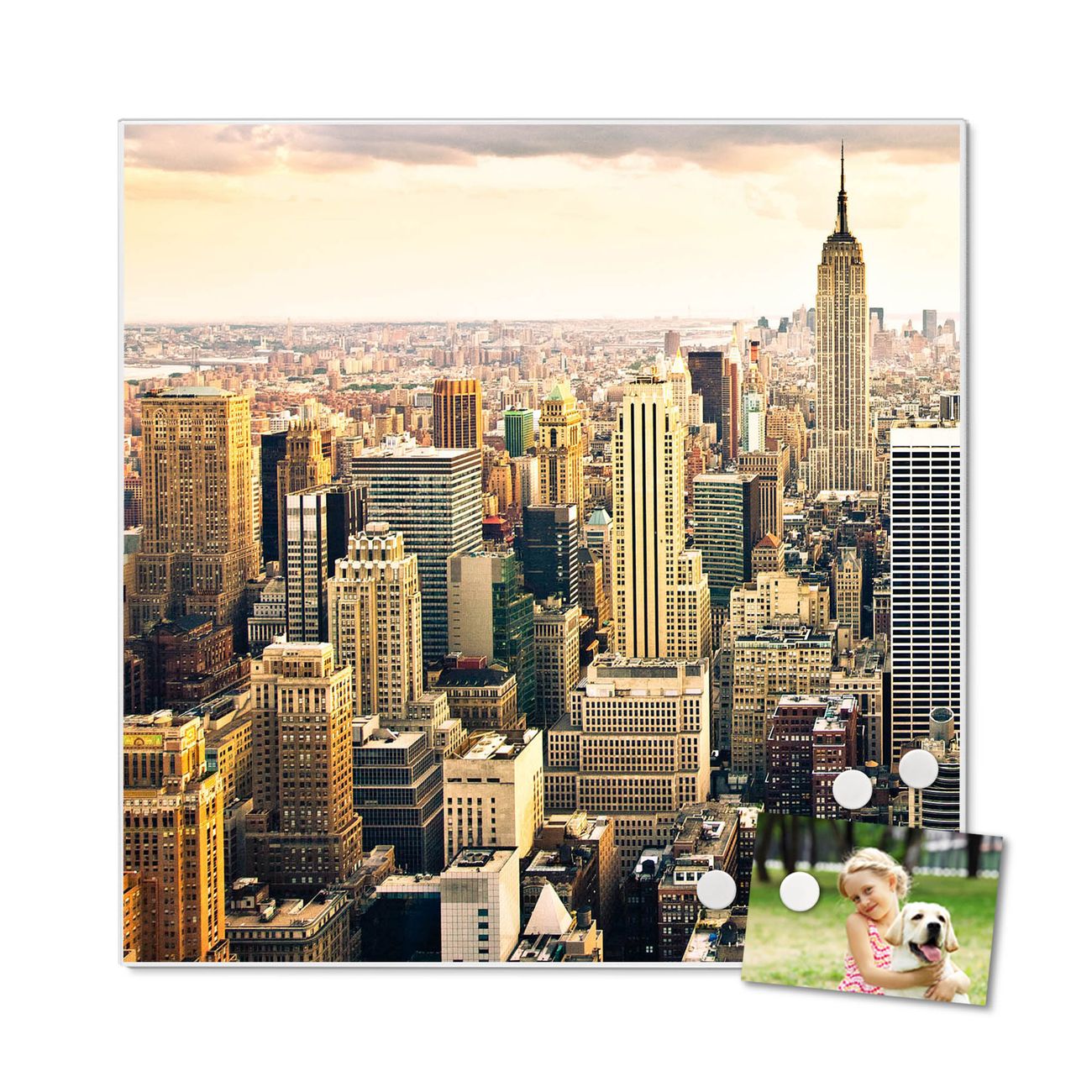 Motiv New York City Nr. 10238 Größe: 50x50x2cm BxHxT Gewicht: ca. 1,5 kg Material: Stahl weiß lackiert, Premiumfolie mit Schutzlaminat Magnete: für Dekomagnete geeignet beschreibbar: Nein Format: Quadratisch Zubehör: 4 Magnete, Schrauben und Dübel