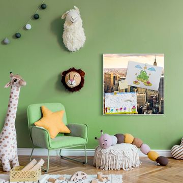 Die banjado Design Magnettafel mit Motiv Motiv New York City bringt Ordnung in Ihr Zettelchaos. Fotos, Termine, Notizen oder Rezepte lassen Sich hier stilvoll mit Magneten ordnen, Sie behalten alles im Blick. An der Pinnwand halten alle handelsüblichen Magnete. Mit dieser Pinnwand aus Metall haben Sie auch ohne Notizen und Magnete ein schönes Dekoelement. Das Quadratische Format bietet Ihnen ausreichend Platz um alle wichtigen Informationen im Blick zu behalten.
