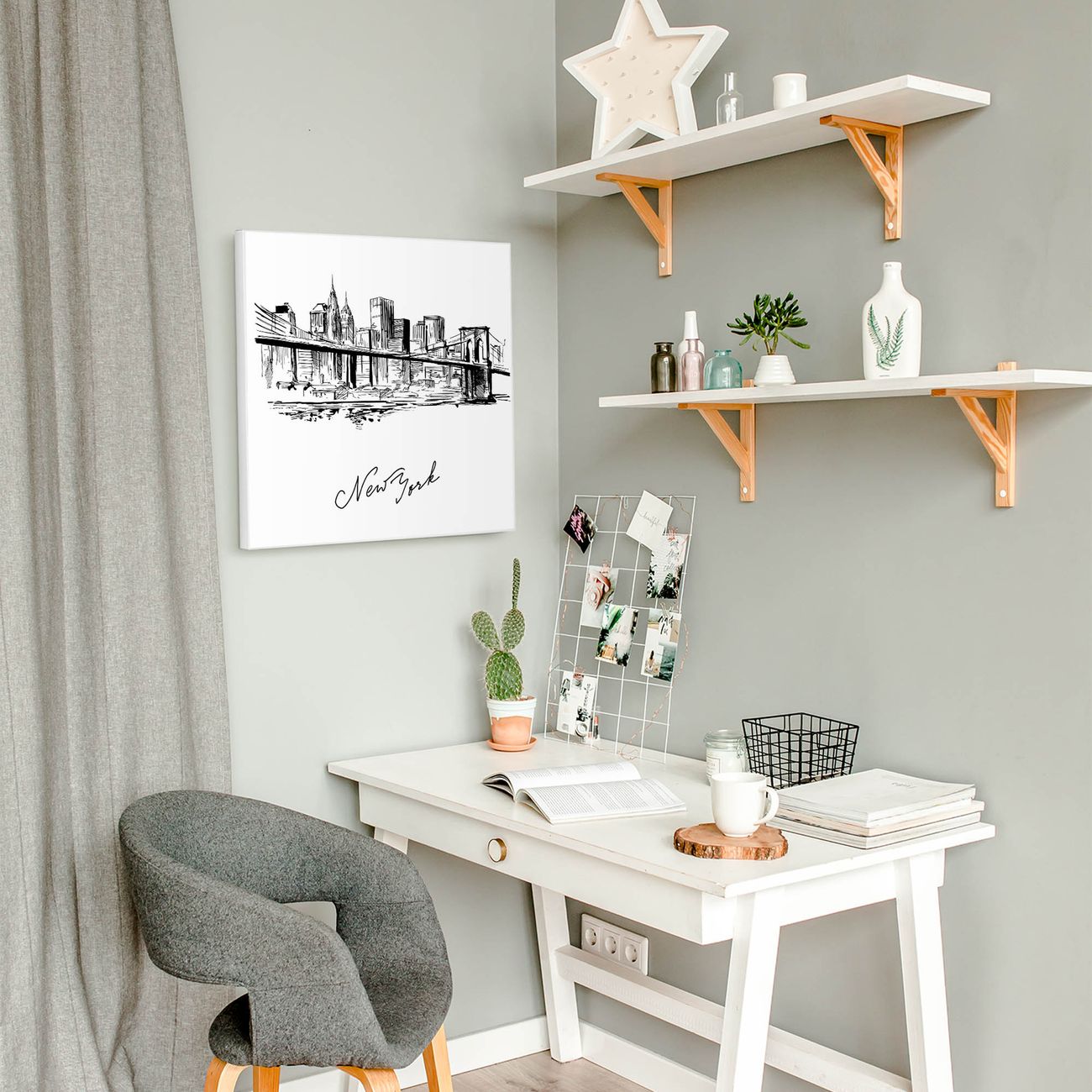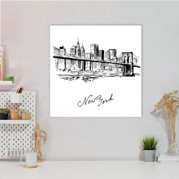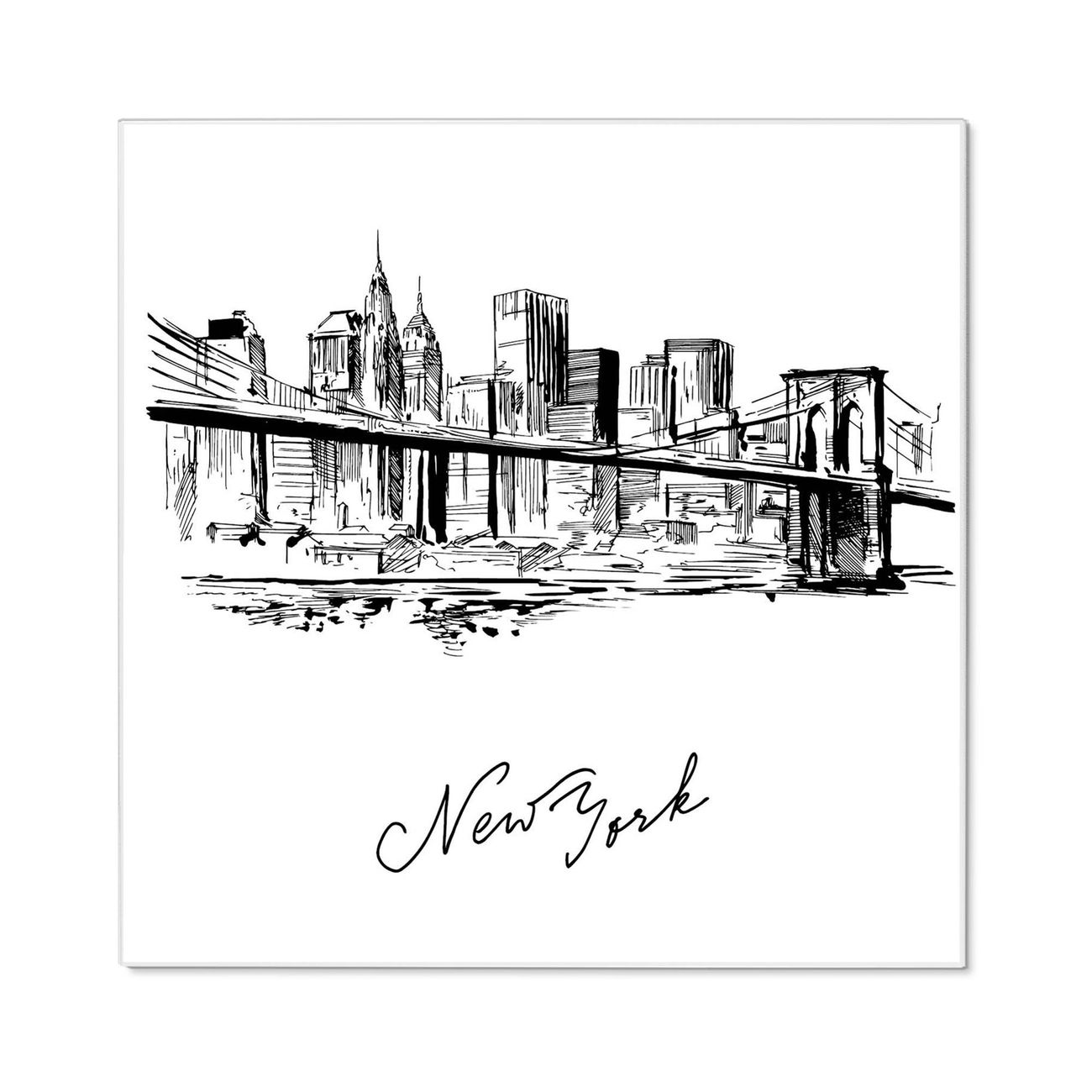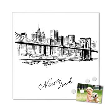 Motiv New York Skizze Nr. 11722 Größe: 50x50x2cm BxHxT Gewicht: ca. 1,5 kg Material: Stahl weiß lackiert, Premiumfolie mit Schutzlaminat Magnete: für Dekomagnete geeignet beschreibbar: Nein Format: Quadratisch Zubehör: 4 Magnete, Schrauben und Dübel