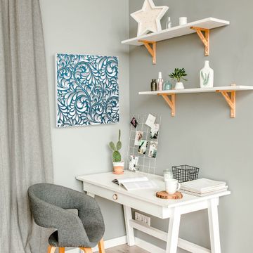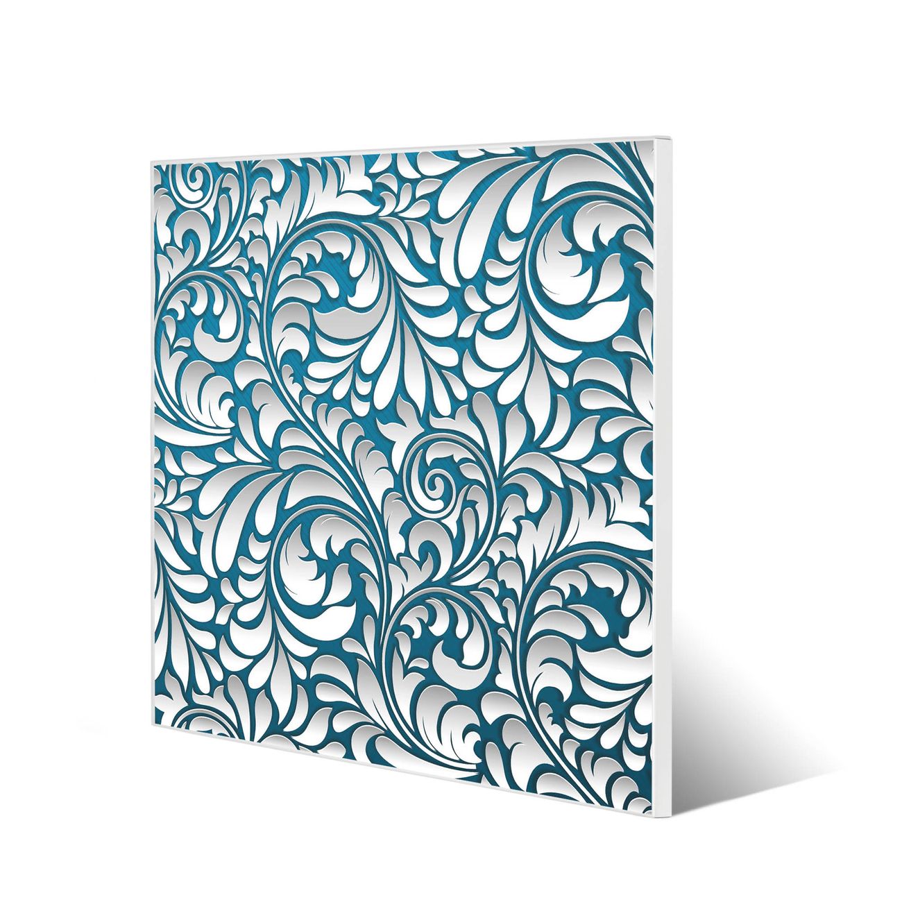 Motiv Opulente Ranke Nr. 12197 Größe: 50x50x2cm BxHxT Gewicht: ca. 1,5 kg Material: Stahl weiß lackiert, Premiumfolie mit Schutzlaminat Magnete: für Dekomagnete geeignet beschreibbar: Nein Format: Quadratisch Zubehör: 4 Magnete, Schrauben und Dübel