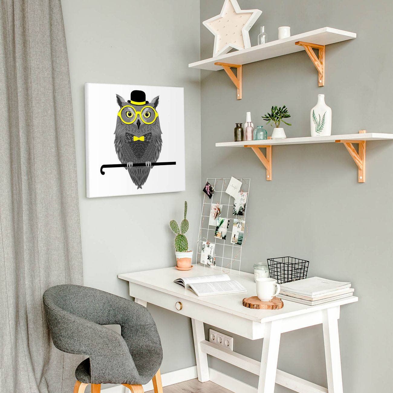 Motiv Owling Nr. 11153 Größe: 50x50x2cm BxHxT Gewicht: ca. 1,5 kg Material: Stahl weiß lackiert, Premiumfolie mit Schutzlaminat Magnete: für Dekomagnete geeignet beschreibbar: Nein Format: Quadratisch Zubehör: 4 Magnete, Schrauben und Dübel