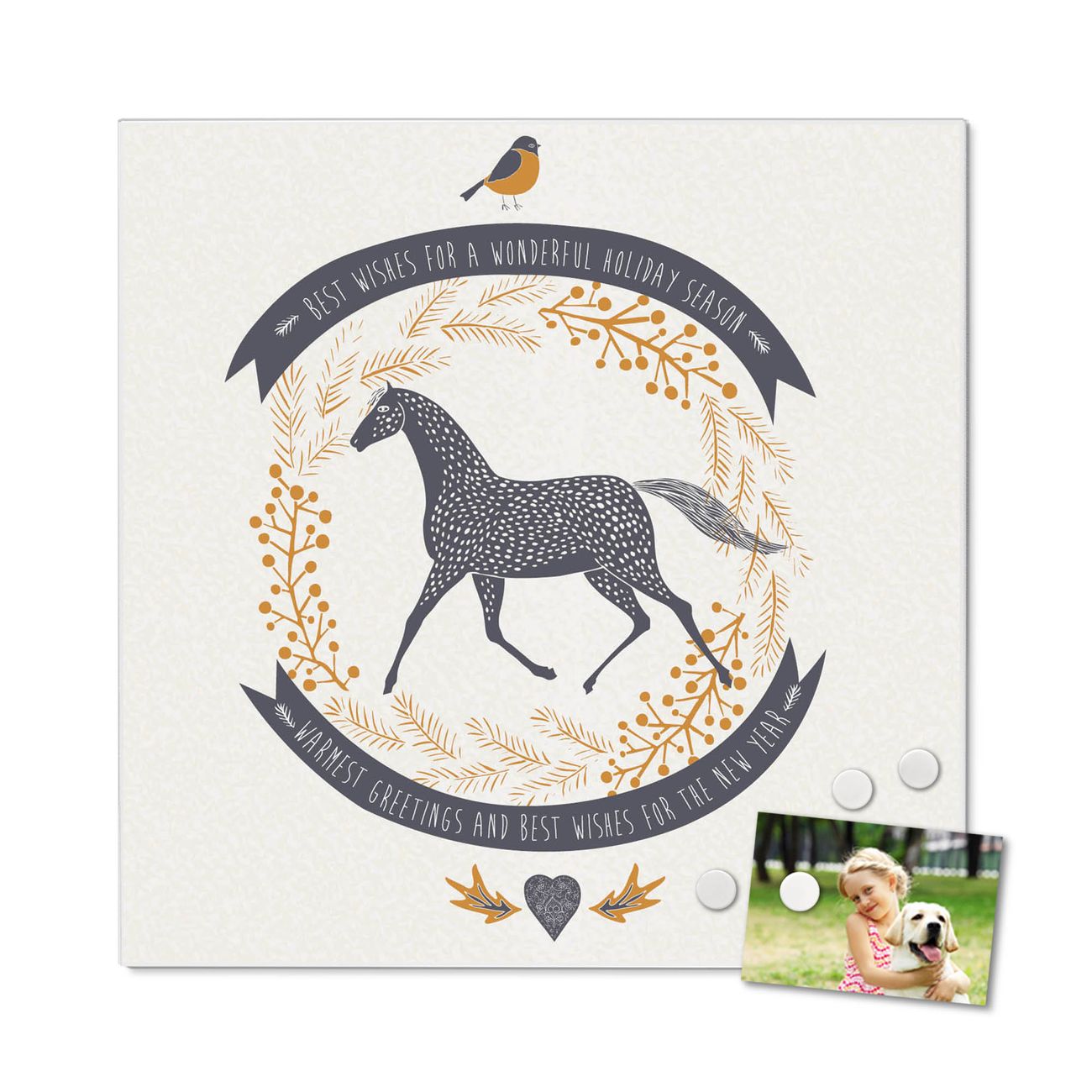 Stahl Magnettafel 50x50cm Pferd und Vogel