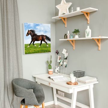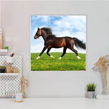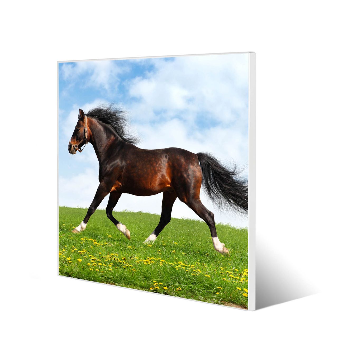 Motiv Pferd Nr. 10021 Größe: 50x50x2cm BxHxT Gewicht: ca. 1,5 kg Material: Stahl weiß lackiert, Premiumfolie mit Schutzlaminat Magnete: für Dekomagnete geeignet beschreibbar: Nein Format: Quadratisch Zubehör: 4 Magnete, Schrauben und Dübel