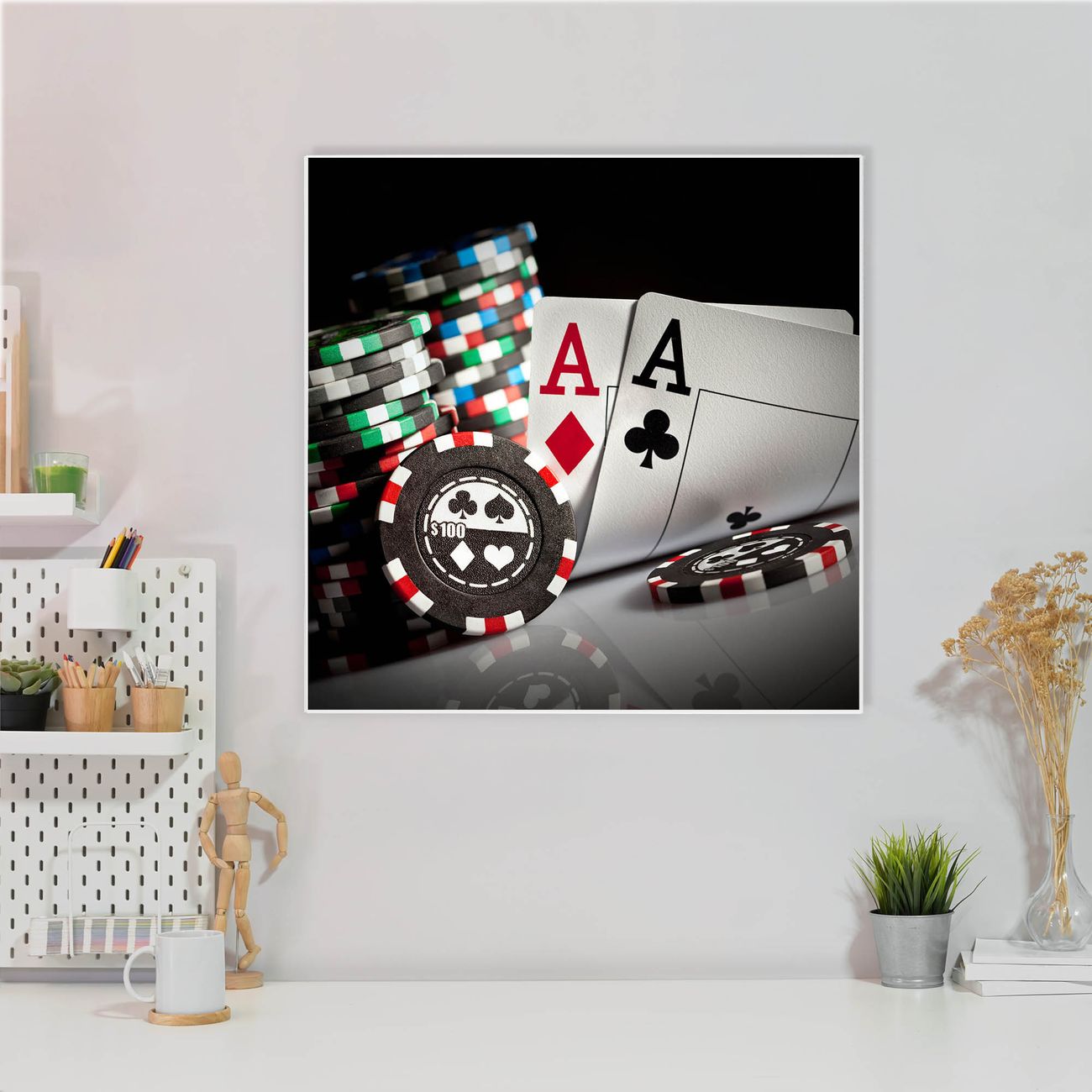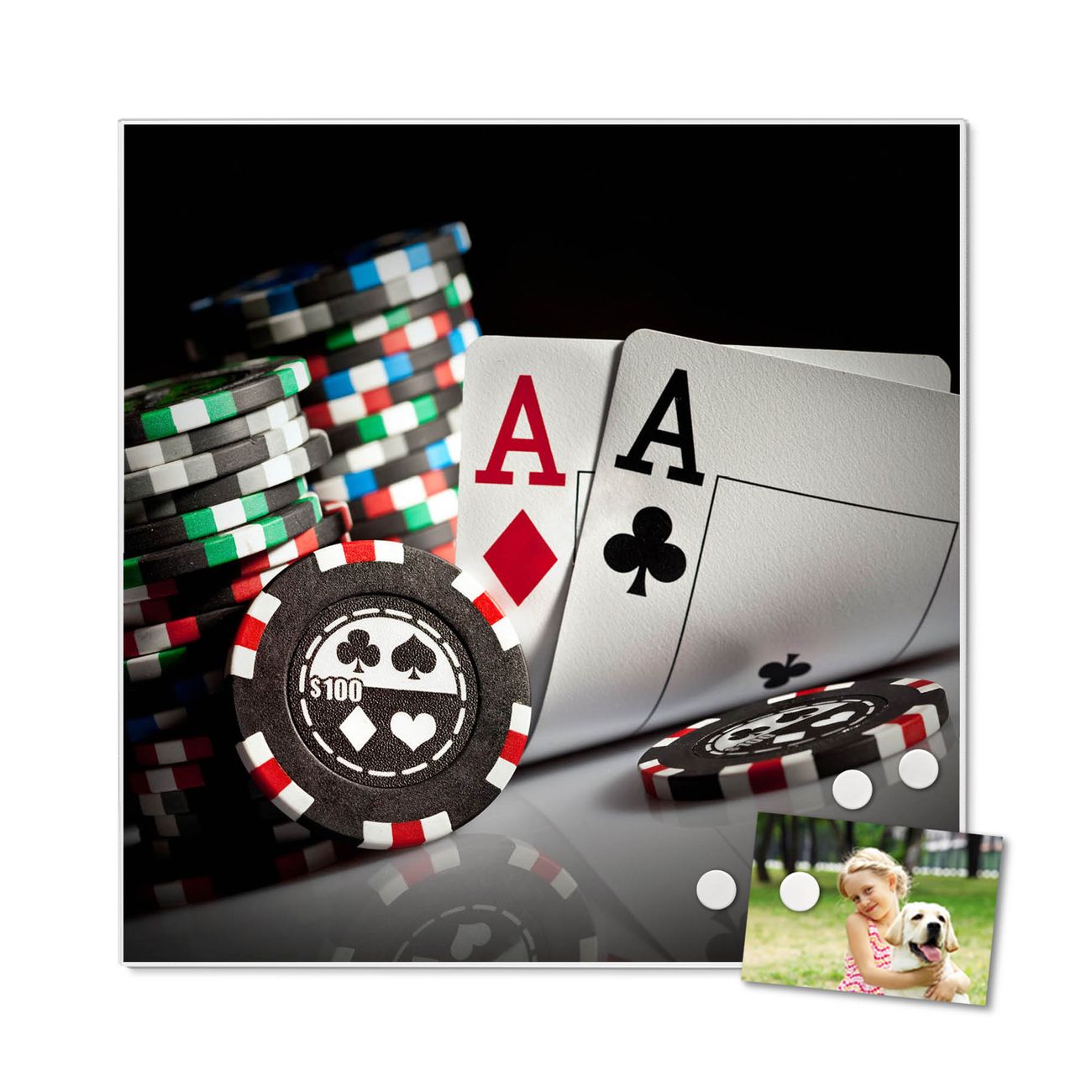 Motiv Poker Nr. 10182 Größe: 50x50x2cm BxHxT Gewicht: ca. 1,5 kg Material: Stahl weiß lackiert, Premiumfolie mit Schutzlaminat Magnete: für Dekomagnete geeignet beschreibbar: Nein Format: Quadratisch Zubehör: 4 Magnete, Schrauben und Dübel
