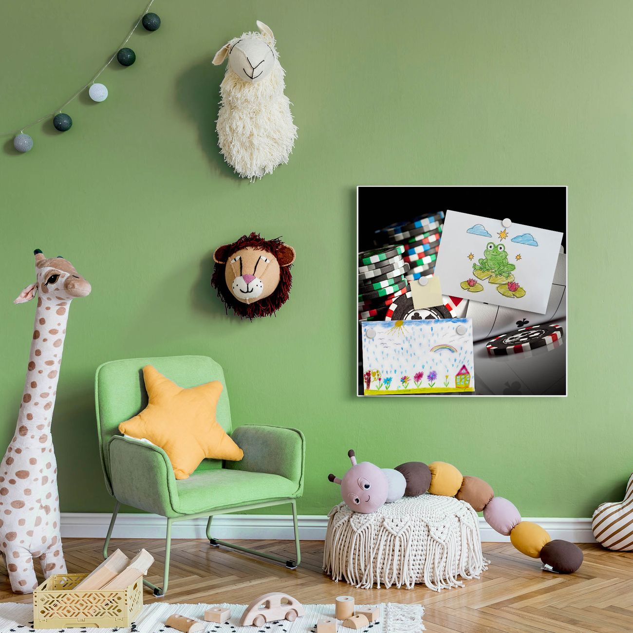 Die banjado Design Magnettafel mit Motiv Motiv Poker bringt Ordnung in Ihr Zettelchaos. Fotos, Termine, Notizen oder Rezepte lassen Sich hier stilvoll mit Magneten ordnen, Sie behalten alles im Blick. An der Pinnwand halten alle handelsüblichen Magnete. Mit dieser Pinnwand aus Metall haben Sie auch ohne Notizen und Magnete ein schönes Dekoelement. Das Quadratische Format bietet Ihnen ausreichend Platz um alle wichtigen Informationen im Blick zu behalten.