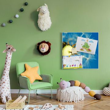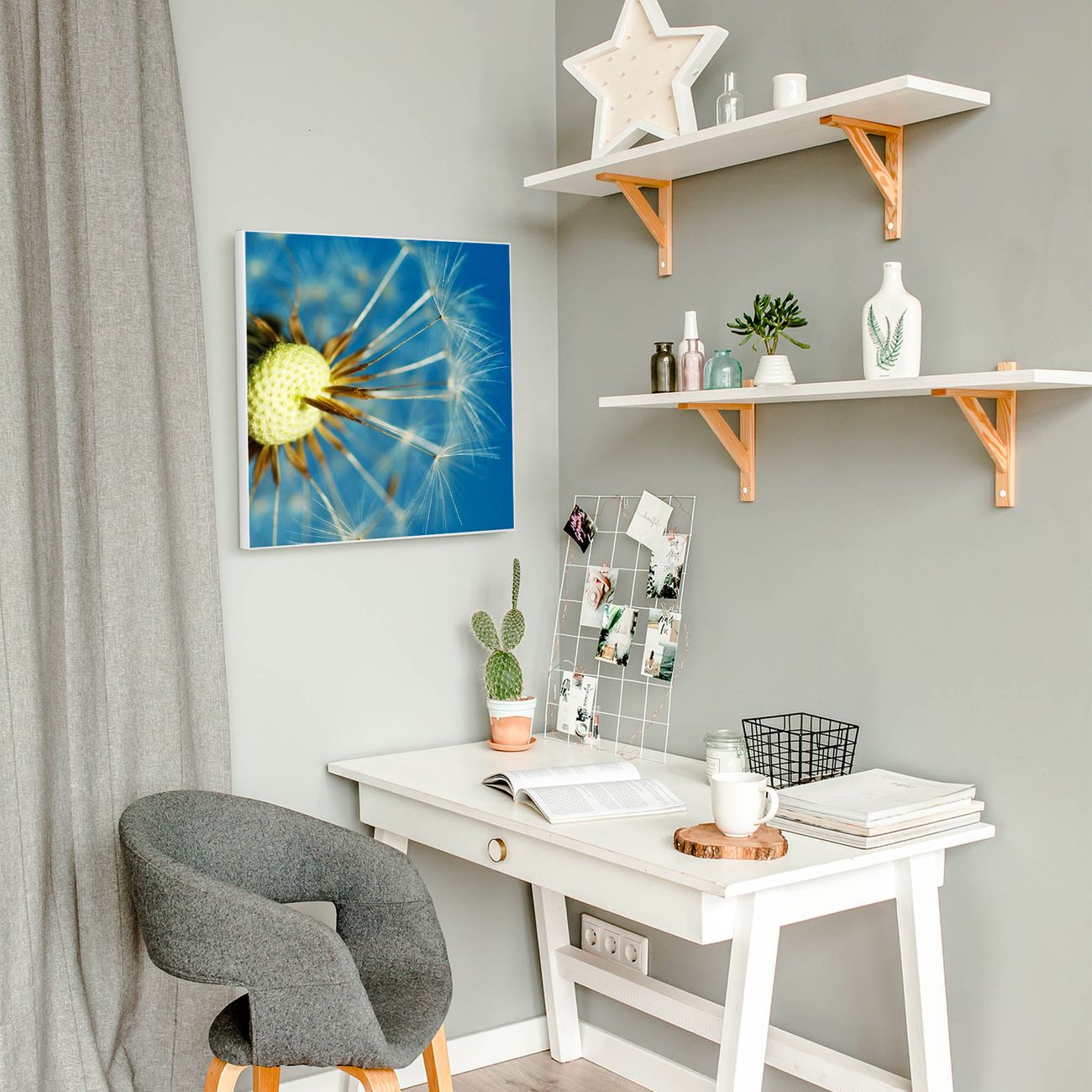 Motiv Pusteblume Detail Nr. 12281 Größe: 50x50x2cm BxHxT Gewicht: ca. 1,5 kg Material: Stahl weiß lackiert, Premiumfolie mit Schutzlaminat Magnete: für Dekomagnete geeignet beschreibbar: Nein Format: Quadratisch Zubehör: 4 Magnete, Schrauben und Dübel