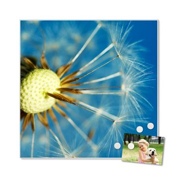 Die banjado Design Magnettafel mit Motiv Motiv Pusteblume Detail bringt Ordnung in Ihr Zettelchaos. Fotos, Termine, Notizen oder Rezepte lassen Sich hier stilvoll mit Magneten ordnen, Sie behalten alles im Blick. An der Pinnwand halten alle handelsüblichen Magnete. Mit dieser Pinnwand aus Metall haben Sie auch ohne Notizen und Magnete ein schönes Dekoelement. Das Quadratische Format bietet Ihnen ausreichend Platz um alle wichtigen Informationen im Blick zu behalten.