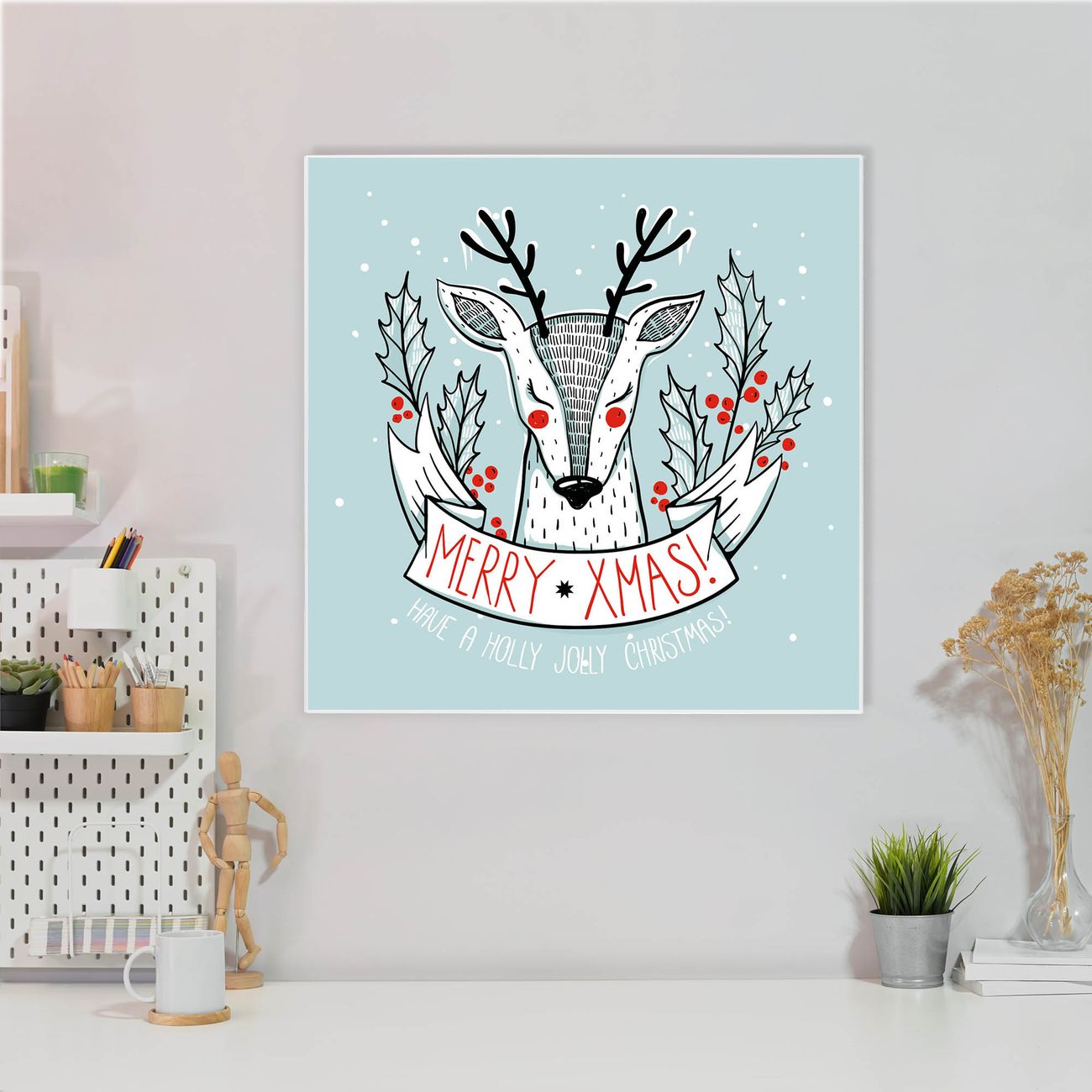Motiv Rentier Nr. 12724 Größe: 50x50x2cm BxHxT Gewicht: ca. 1,5 kg Material: Stahl weiß lackiert, Premiumfolie mit Schutzlaminat Magnete: für Dekomagnete geeignet beschreibbar: Nein Format: Quadratisch Zubehör: 4 Magnete, Schrauben und Dübel