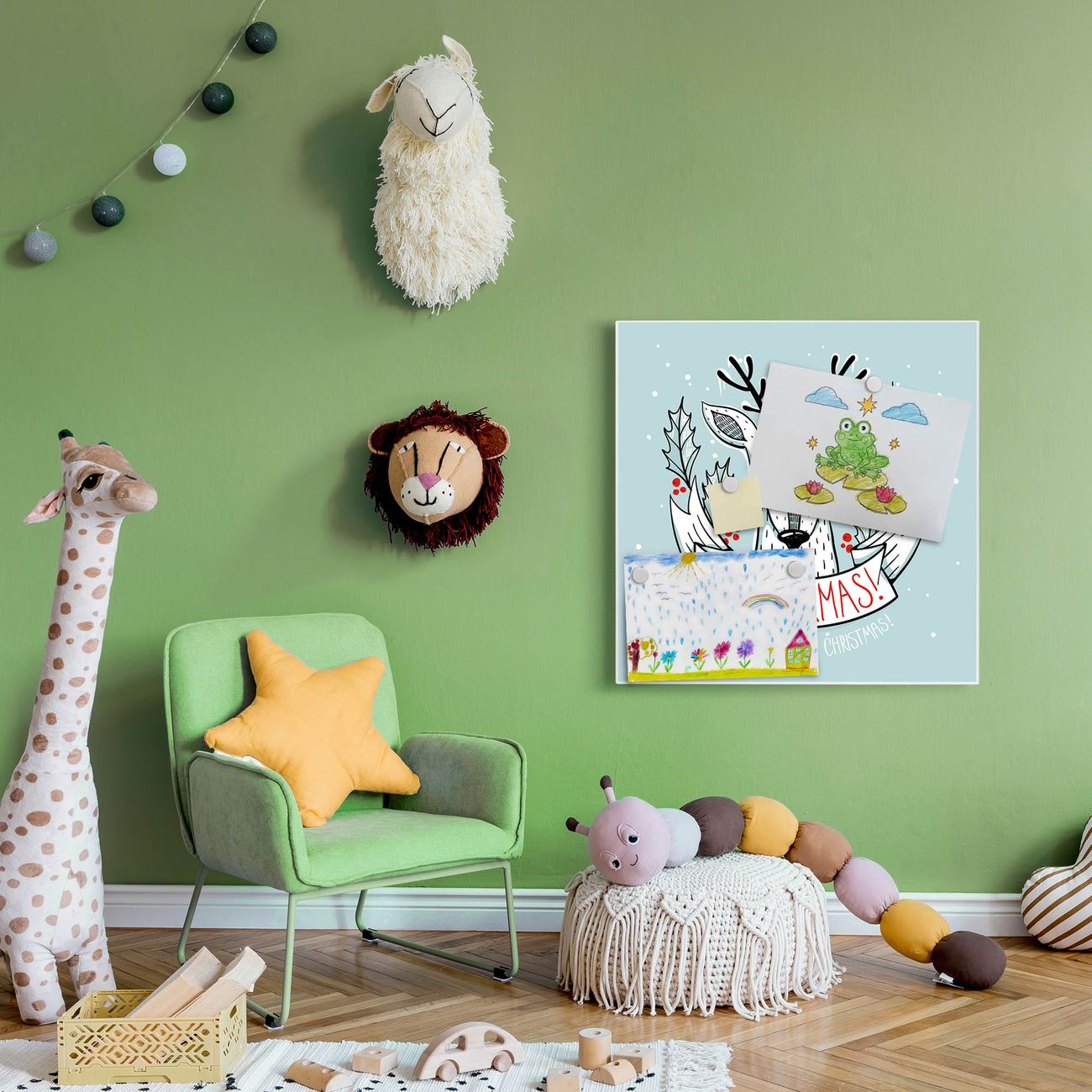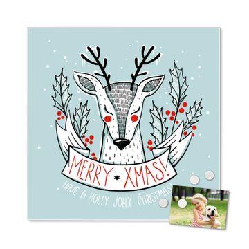 Die banjado Design Magnettafel mit Motiv Motiv Rentier bringt Ordnung in Ihr Zettelchaos. Fotos, Termine, Notizen oder Rezepte lassen Sich hier stilvoll mit Magneten ordnen, Sie behalten alles im Blick. An der Pinnwand halten alle handelsüblichen Magnete. Mit dieser Pinnwand aus Metall haben Sie auch ohne Notizen und Magnete ein schönes Dekoelement. Das Quadratische Format bietet Ihnen ausreichend Platz um alle wichtigen Informationen im Blick zu behalten.