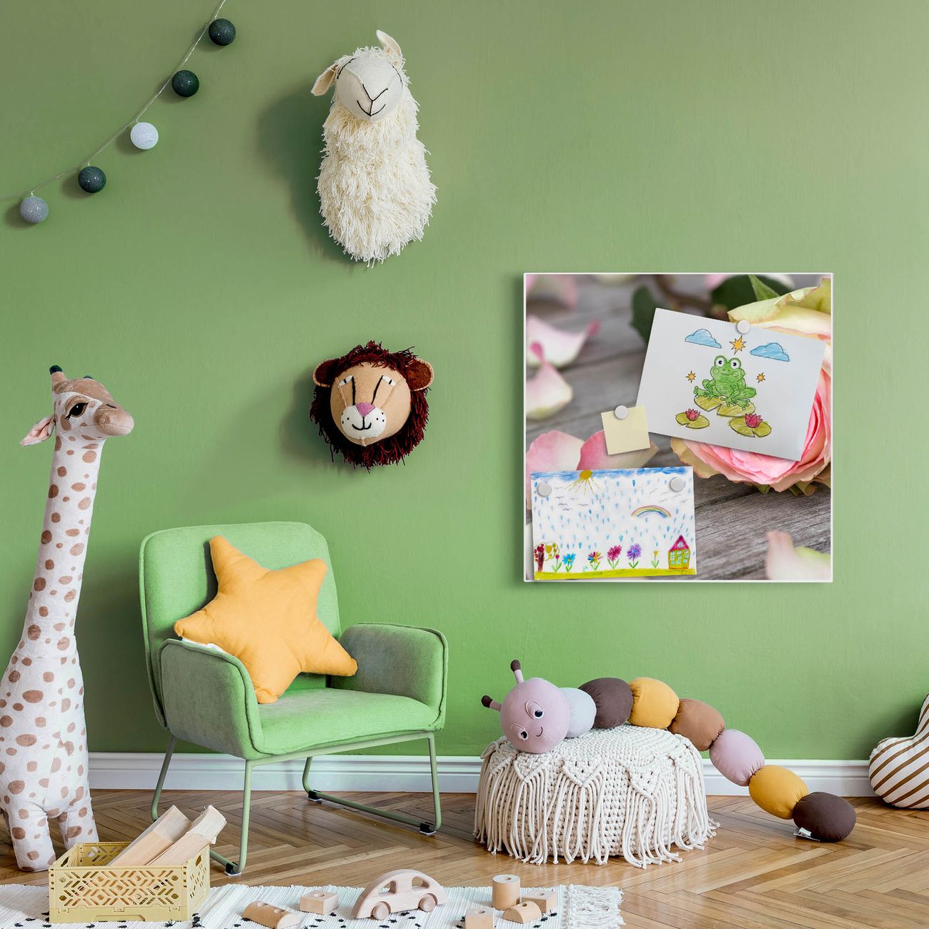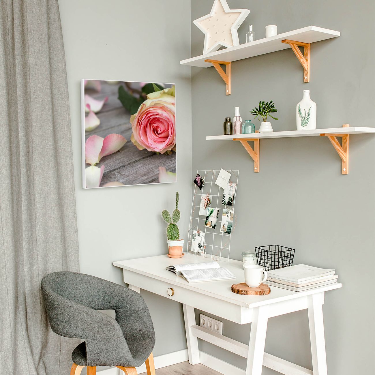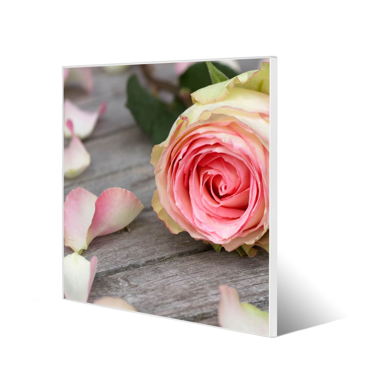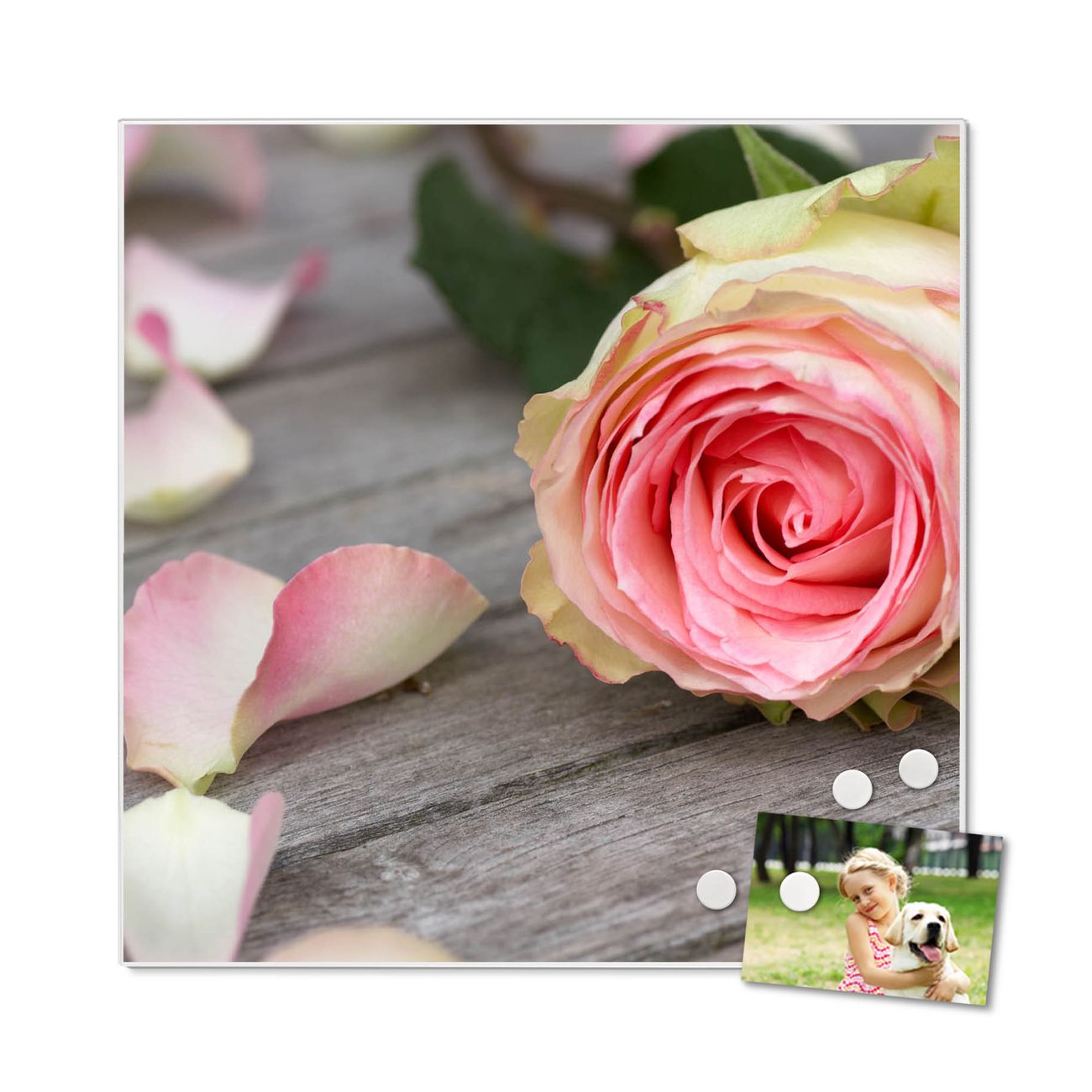 Motiv Rosa Rose Nr. 10231 Größe: 50x50x2cm BxHxT Gewicht: ca. 1,5 kg Material: Stahl weiß lackiert, Premiumfolie mit Schutzlaminat Magnete: für Dekomagnete geeignet beschreibbar: Nein Format: Quadratisch Zubehör: 4 Magnete, Schrauben und Dübel