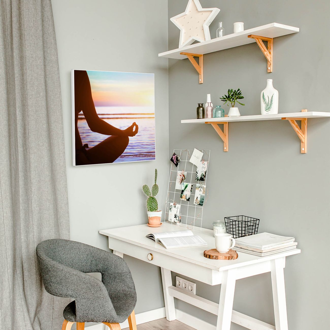 Motiv Ruhe Nr. 12124 Größe: 50x50x2cm BxHxT Gewicht: ca. 1,5 kg Material: Stahl weiß lackiert, Premiumfolie mit Schutzlaminat Magnete: für Dekomagnete geeignet beschreibbar: Nein Format: Quadratisch Zubehör: 4 Magnete, Schrauben und Dübel