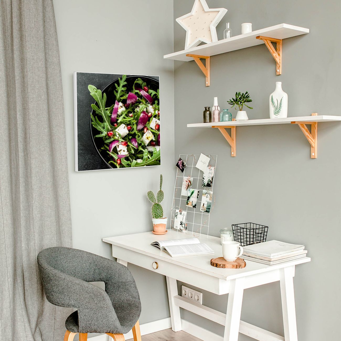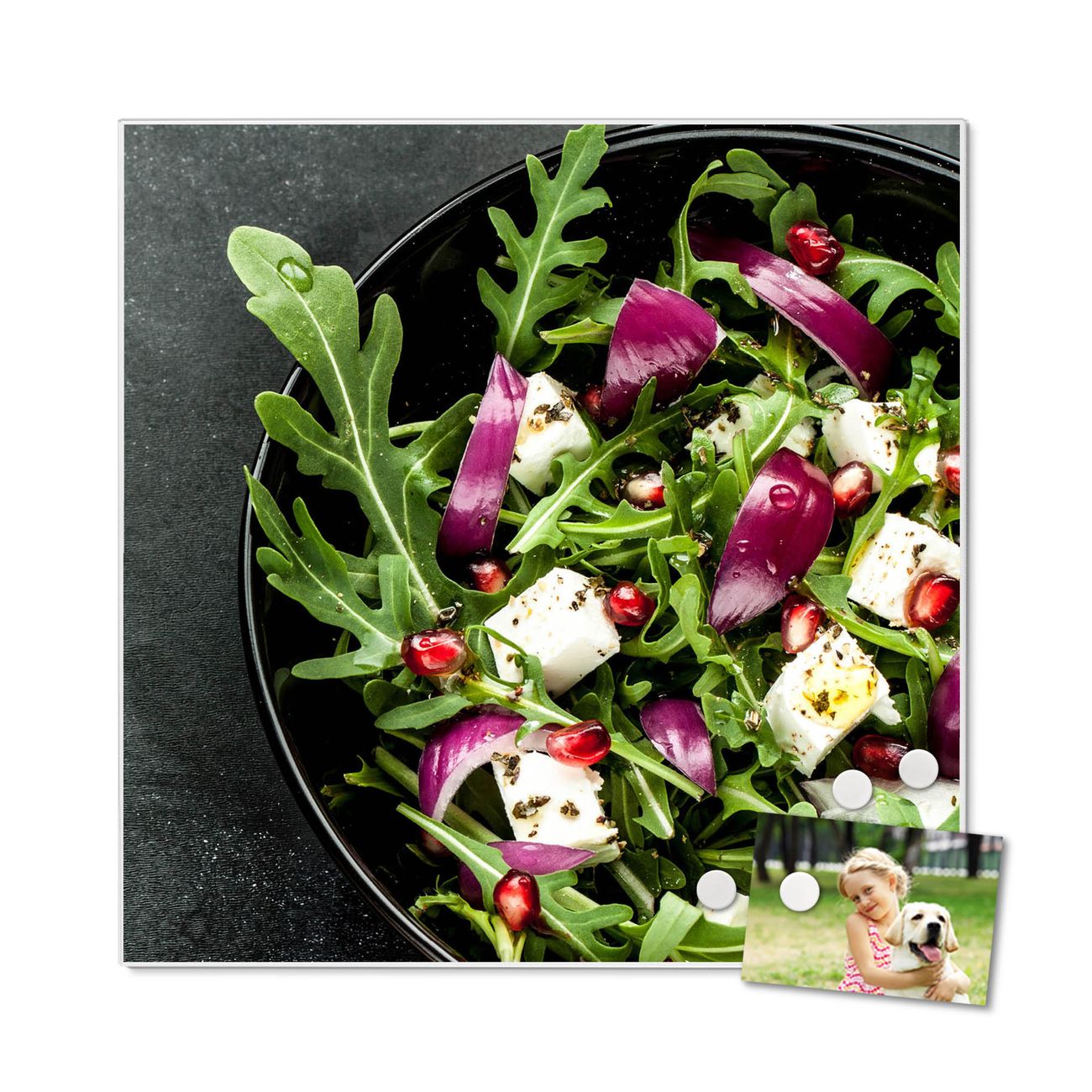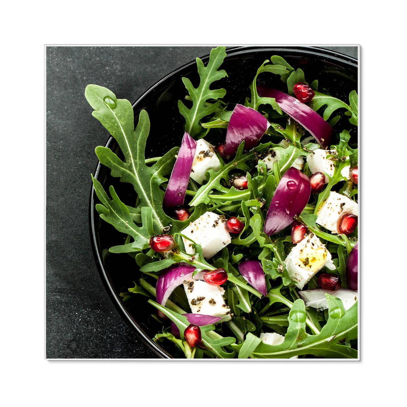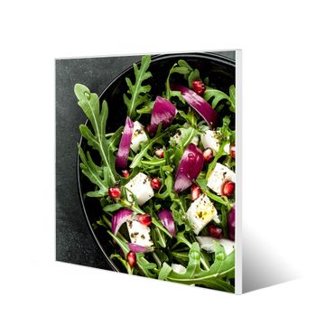 Motiv Salat Nr. 12715 Größe: 50x50x2cm BxHxT Gewicht: ca. 1,5 kg Material: Stahl weiß lackiert, Premiumfolie mit Schutzlaminat Magnete: für Dekomagnete geeignet beschreibbar: Nein Format: Quadratisch Zubehör: 4 Magnete, Schrauben und Dübel