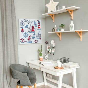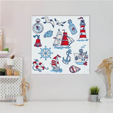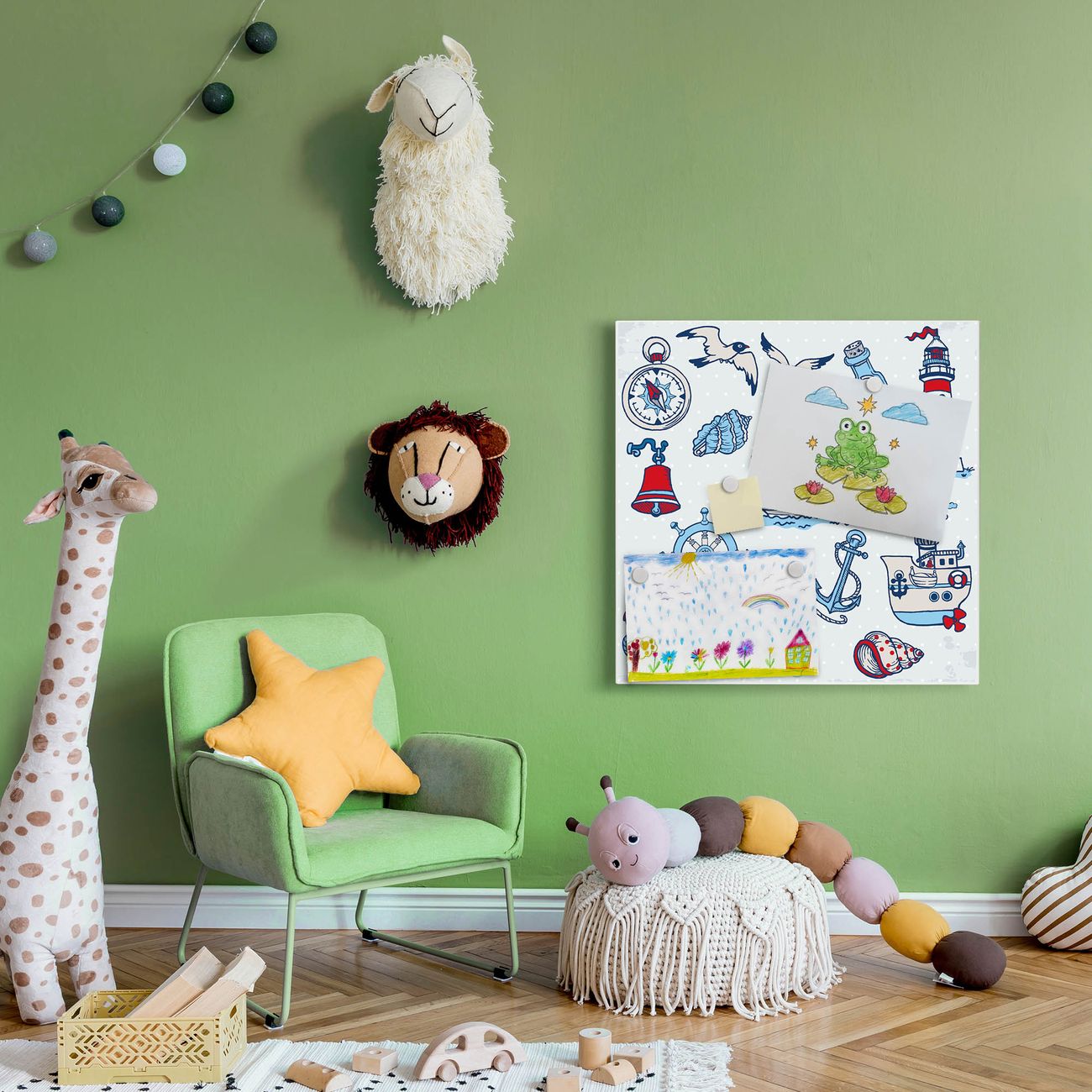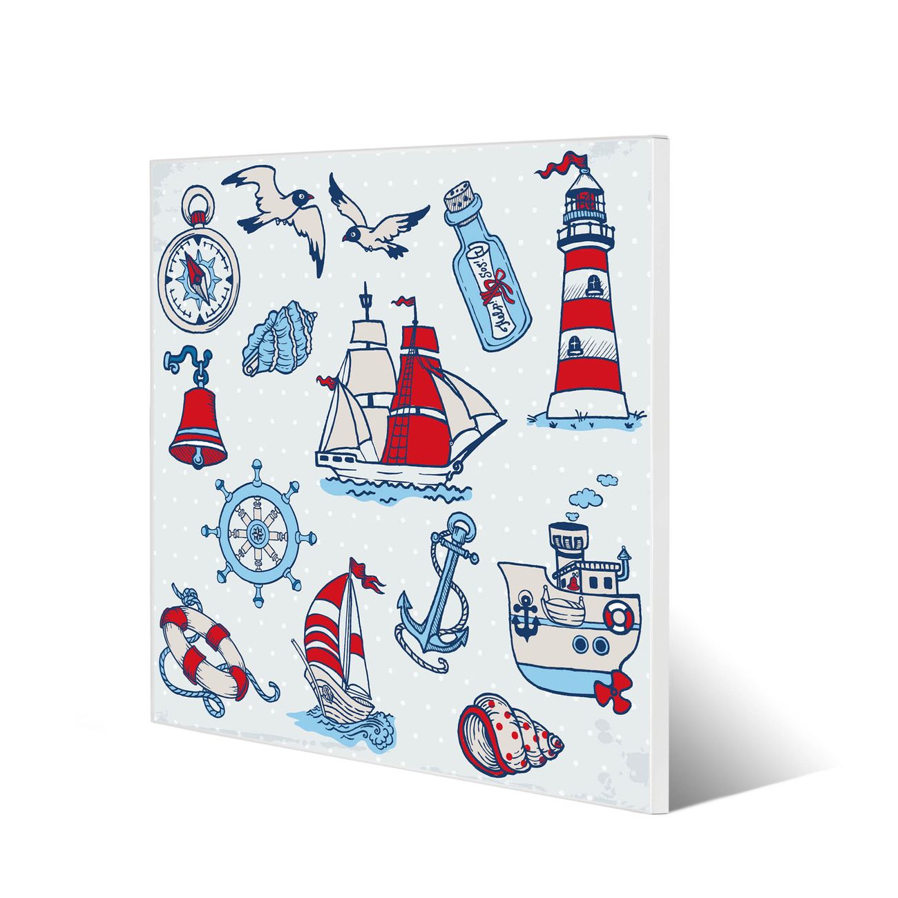 Motiv Schiff Ahoj Nr. 10483 Größe: 50x50x2cm BxHxT Gewicht: ca. 1,5 kg Material: Stahl weiß lackiert, Premiumfolie mit Schutzlaminat Magnete: für Dekomagnete geeignet beschreibbar: Nein Format: Quadratisch Zubehör: 4 Magnete, Schrauben und Dübel