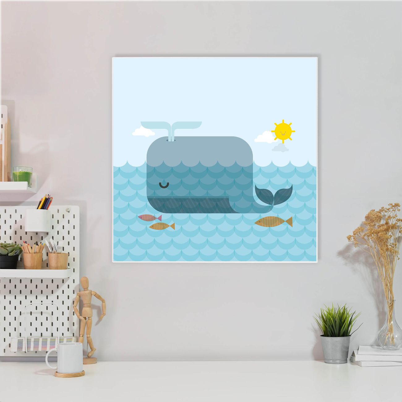 Motiv Schlafender Wal Nr. 11765 Größe: 50x50x2cm BxHxT Gewicht: ca. 1,5 kg Material: Stahl weiß lackiert, Premiumfolie mit Schutzlaminat Magnete: für Dekomagnete geeignet beschreibbar: Nein Format: Quadratisch Zubehör: 4 Magnete, Schrauben und Dübel