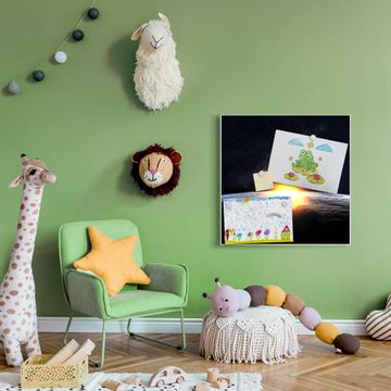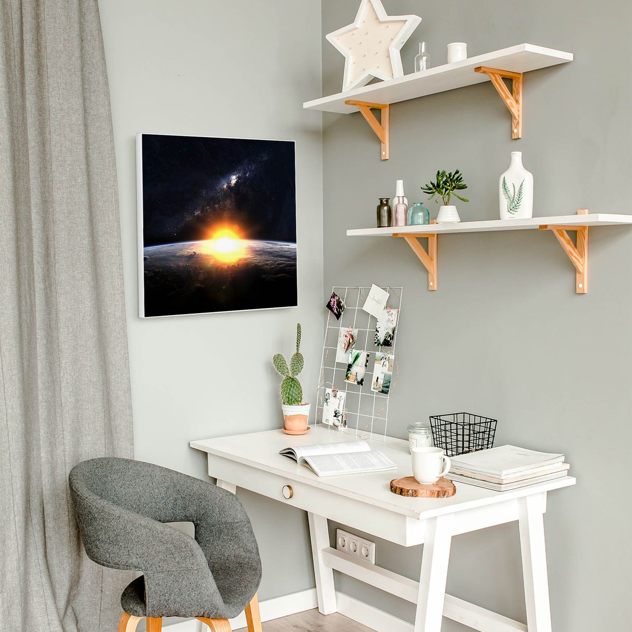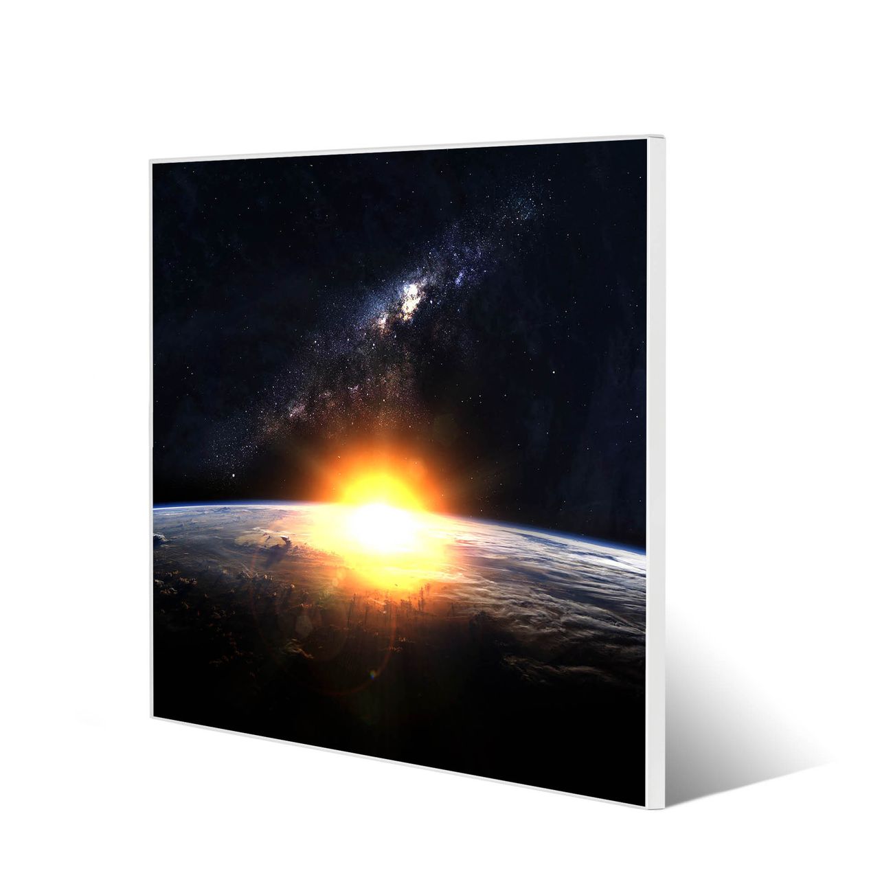 Motiv Sonne im Weltall Nr. 12532 Größe: 50x50x2cm BxHxT Gewicht: ca. 1,5 kg Material: Stahl weiß lackiert, Premiumfolie mit Schutzlaminat Magnete: für Dekomagnete geeignet beschreibbar: Nein Format: Quadratisch Zubehör: 4 Magnete, Schrauben und Dübel