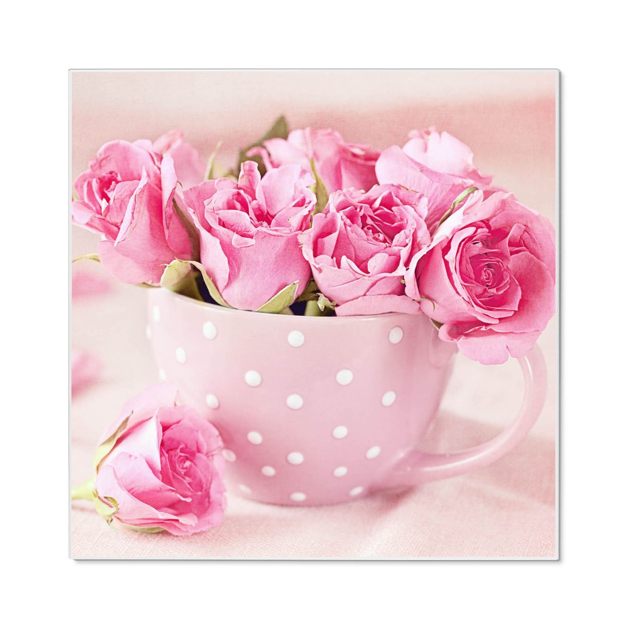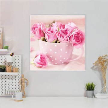 Stahl Magnettafel 50x50cm Tasse Voll Rosen