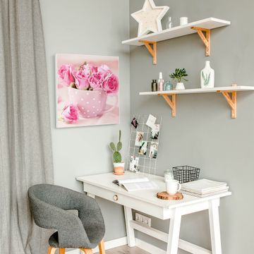 Motiv Tasse Voll Rosen Nr. 12338 Größe: 50x50x2cm BxHxT Gewicht: ca. 1,5 kg Material: Stahl weiß lackiert, Premiumfolie mit Schutzlaminat Magnete: für Dekomagnete geeignet beschreibbar: Nein Format: Quadratisch Zubehör: 4 Magnete, Schrauben und Dübel