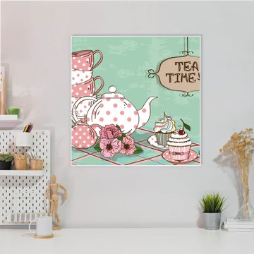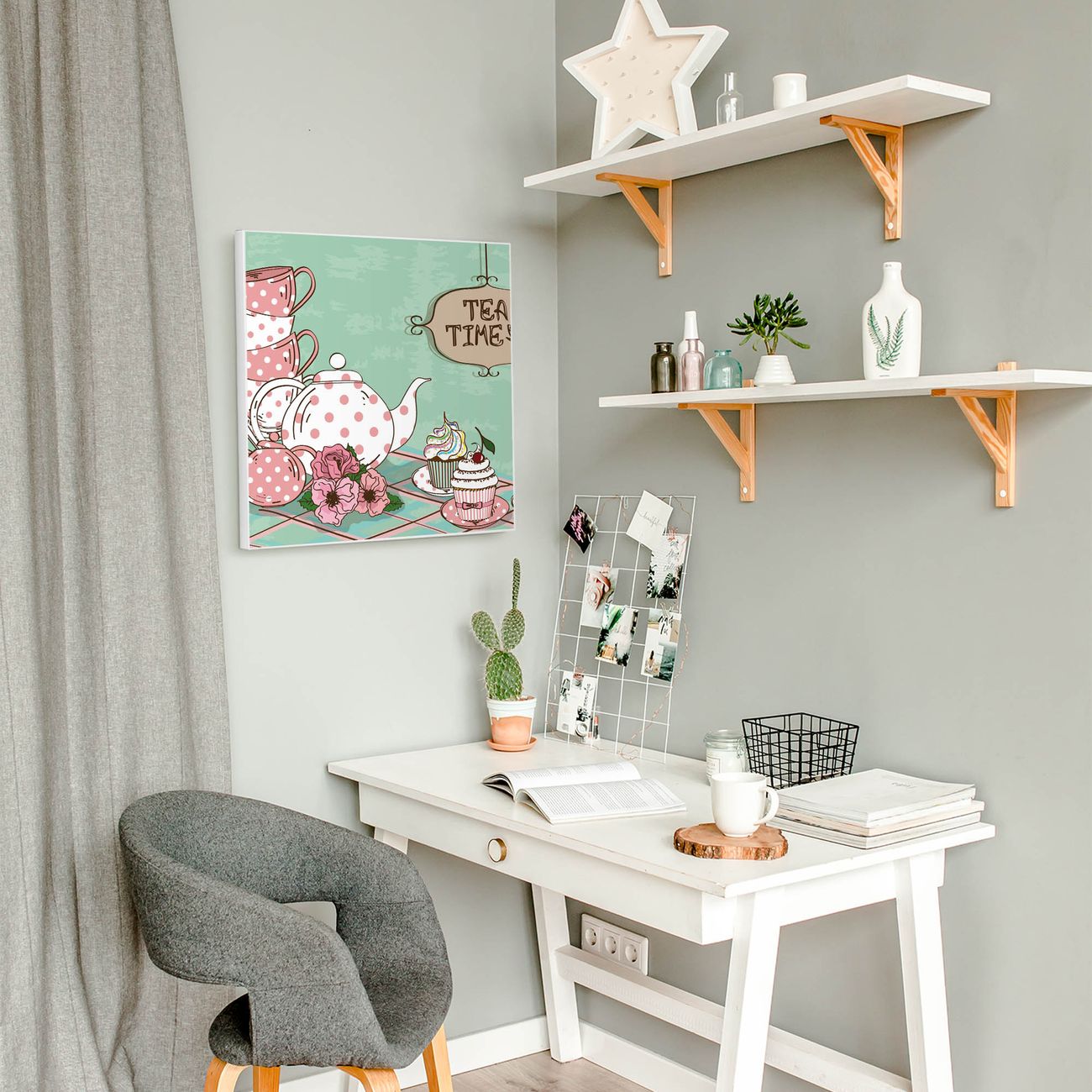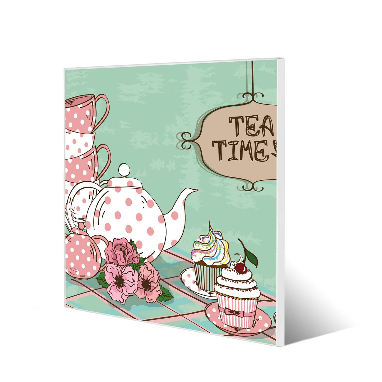 Motiv Tea Time Nr. 12121 Größe: 50x50x2cm BxHxT Gewicht: ca. 1,5 kg Material: Stahl weiß lackiert, Premiumfolie mit Schutzlaminat Magnete: für Dekomagnete geeignet beschreibbar: Nein Format: Quadratisch Zubehör: 4 Magnete, Schrauben und Dübel