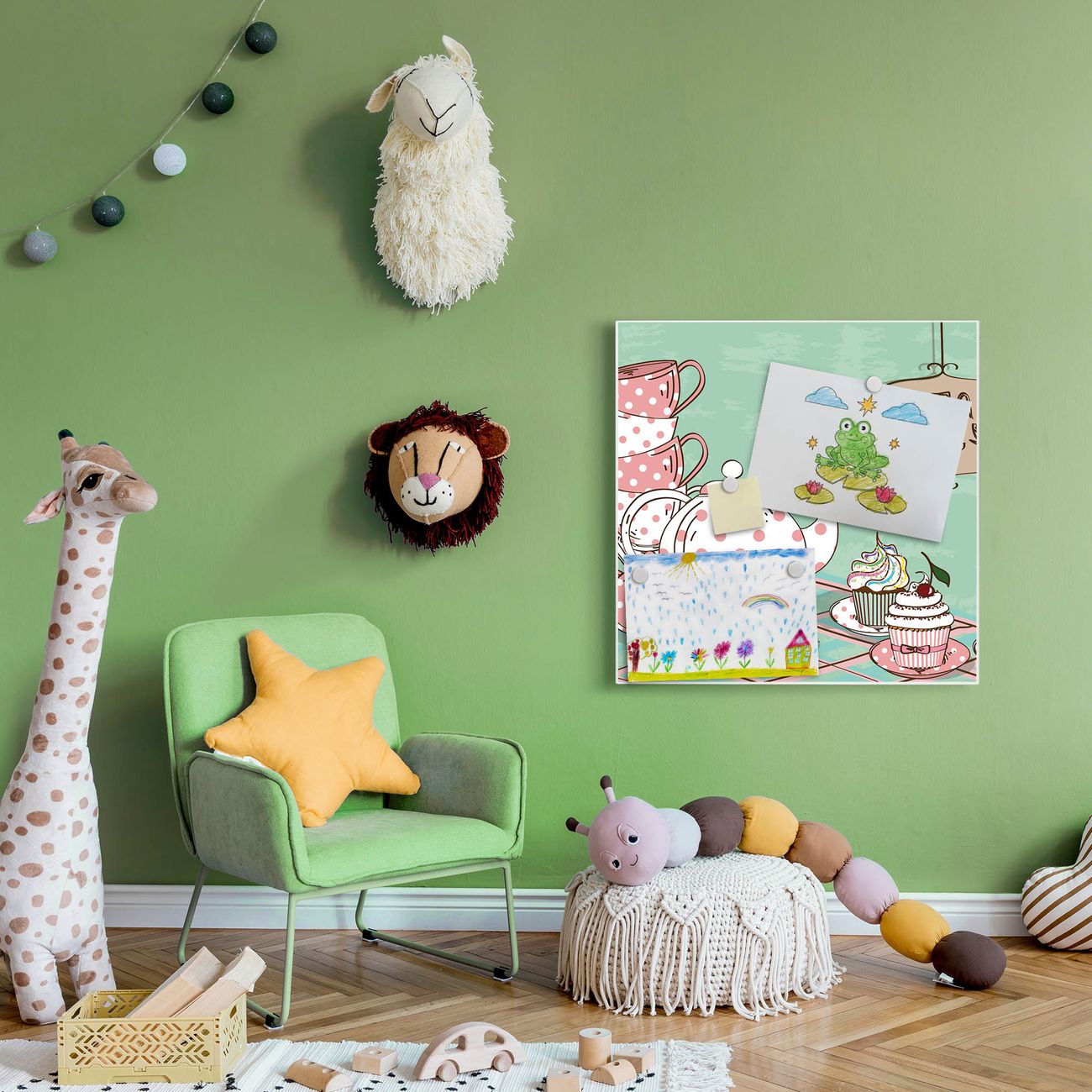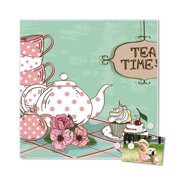 Die banjado Design Magnettafel mit Motiv Motiv Tea Time bringt Ordnung in Ihr Zettelchaos. Fotos, Termine, Notizen oder Rezepte lassen Sich hier stilvoll mit Magneten ordnen, Sie behalten alles im Blick. An der Pinnwand halten alle handelsüblichen Magnete. Mit dieser Pinnwand aus Metall haben Sie auch ohne Notizen und Magnete ein schönes Dekoelement. Das Quadratische Format bietet Ihnen ausreichend Platz um alle wichtigen Informationen im Blick zu behalten.
