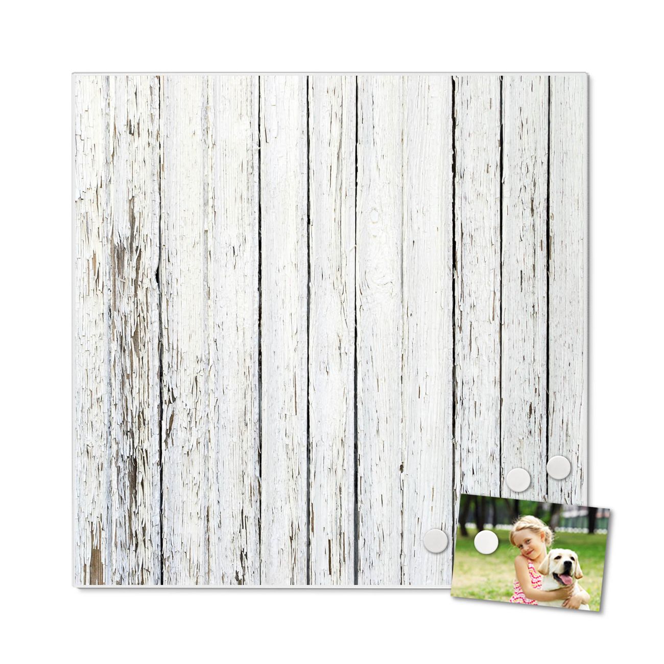 Motiv Weißer Bretterzaun Nr. 10442 Größe: 50x50x2cm BxHxT Gewicht: ca. 1,5 kg Material: Stahl weiß lackiert, Premiumfolie mit Schutzlaminat Magnete: für Dekomagnete geeignet beschreibbar: Nein Format: Quadratisch Zubehör: 4 Magnete, Schrauben und Dübel