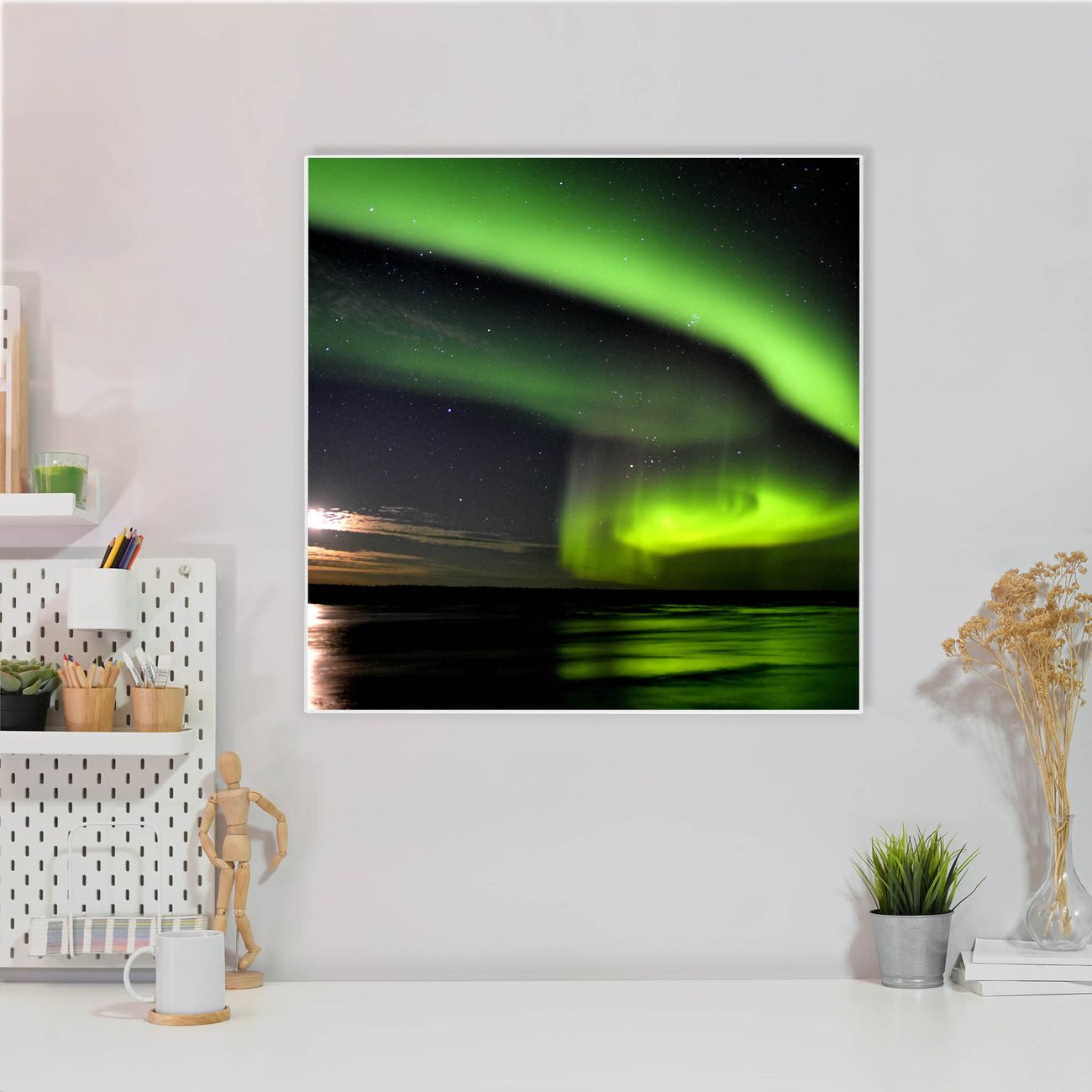 Motiv Wetterleuchten Nr. 10236 Größe: 50x50x2cm BxHxT Gewicht: ca. 1,5 kg Material: Stahl weiß lackiert, Premiumfolie mit Schutzlaminat Magnete: für Dekomagnete geeignet beschreibbar: Nein Format: Quadratisch Zubehör: 4 Magnete, Schrauben und Dübel