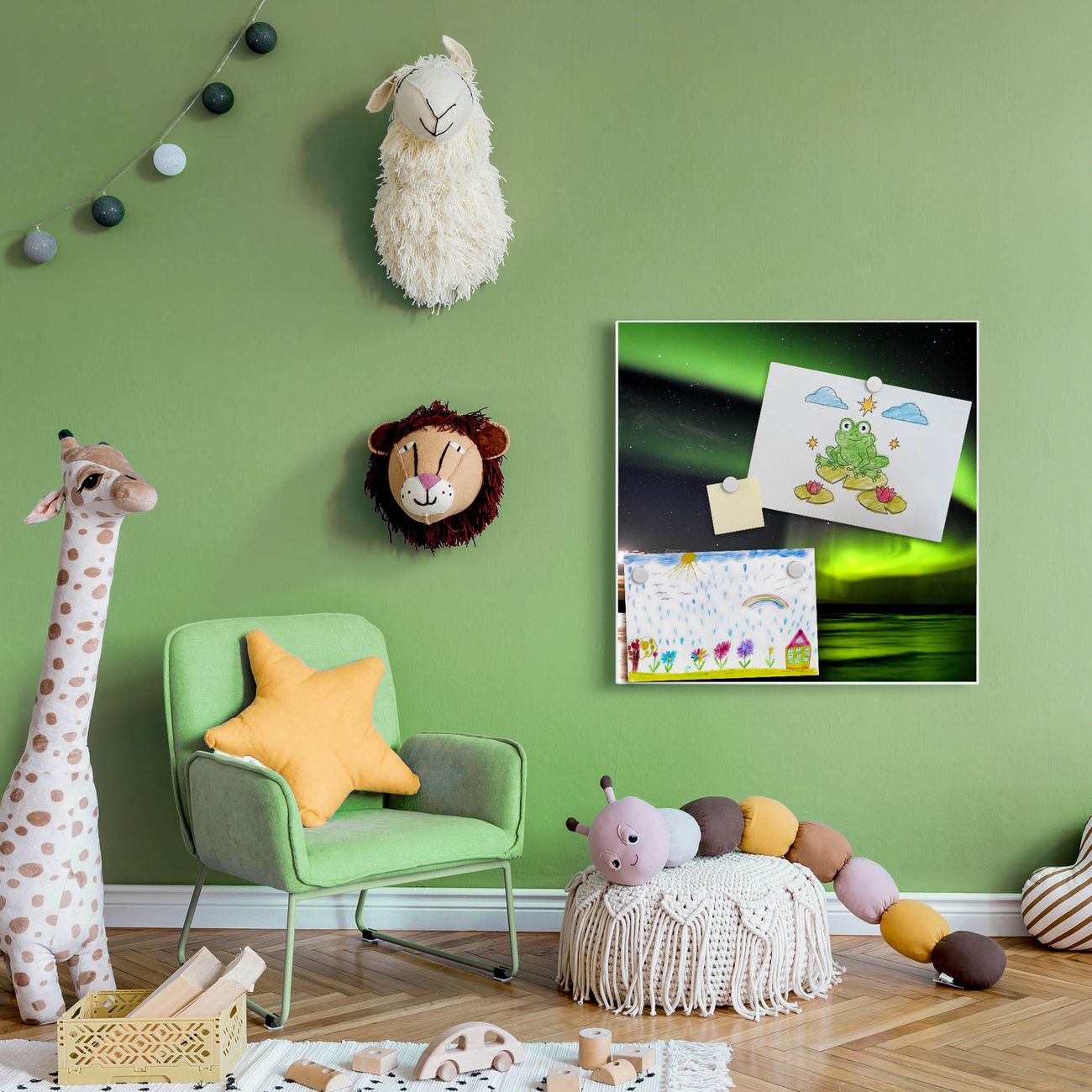 Die banjado Design Magnettafel mit Motiv Motiv Wetterleuchten bringt Ordnung in Ihr Zettelchaos. Fotos, Termine, Notizen oder Rezepte lassen Sich hier stilvoll mit Magneten ordnen, Sie behalten alles im Blick. An der Pinnwand halten alle handelsüblichen Magnete. Mit dieser Pinnwand aus Metall haben Sie auch ohne Notizen und Magnete ein schönes Dekoelement. Das Quadratische Format bietet Ihnen ausreichend Platz um alle wichtigen Informationen im Blick zu behalten.