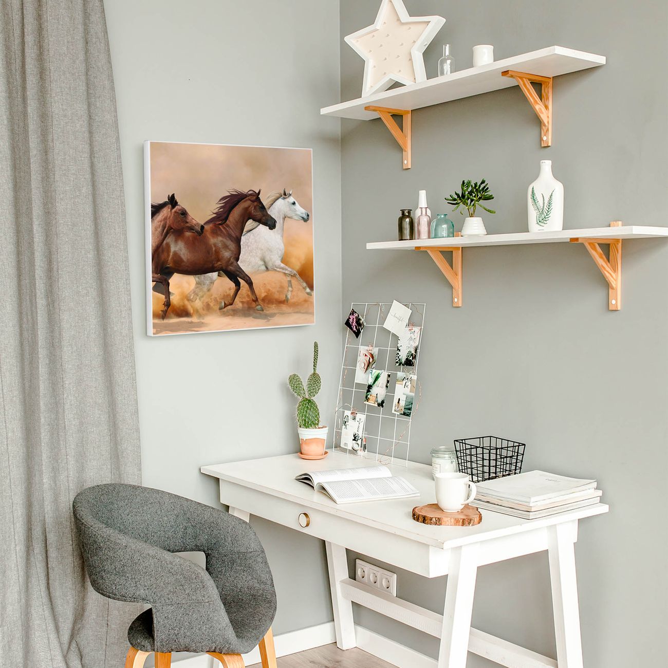 Motiv Wilde Pferde Nr. 12391 Größe: 50x50x2cm BxHxT Gewicht: ca. 1,5 kg Material: Stahl weiß lackiert, Premiumfolie mit Schutzlaminat Magnete: für Dekomagnete geeignet beschreibbar: Nein Format: Quadratisch Zubehör: 4 Magnete, Schrauben und Dübel