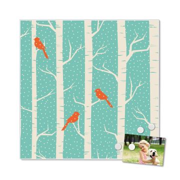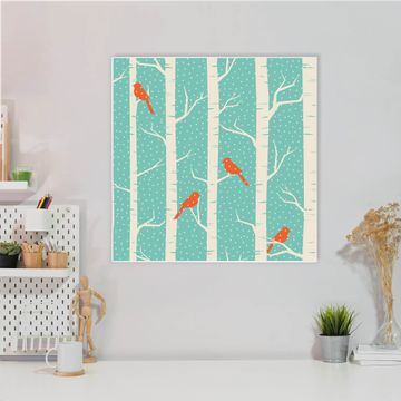 Die banjado Design Magnettafel mit Motiv Motiv Wintervögel bringt Ordnung in Ihr Zettelchaos. Fotos, Termine, Notizen oder Rezepte lassen Sich hier stilvoll mit Magneten ordnen, Sie behalten alles im Blick. An der Pinnwand halten alle handelsüblichen Magnete. Mit dieser Pinnwand aus Metall haben Sie auch ohne Notizen und Magnete ein schönes Dekoelement. Das Quadratische Format bietet Ihnen ausreichend Platz um alle wichtigen Informationen im Blick zu behalten.