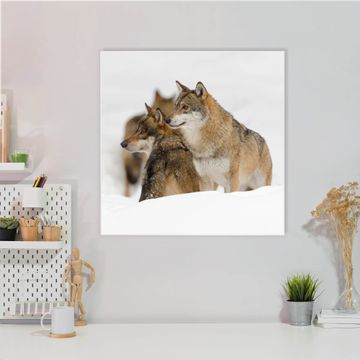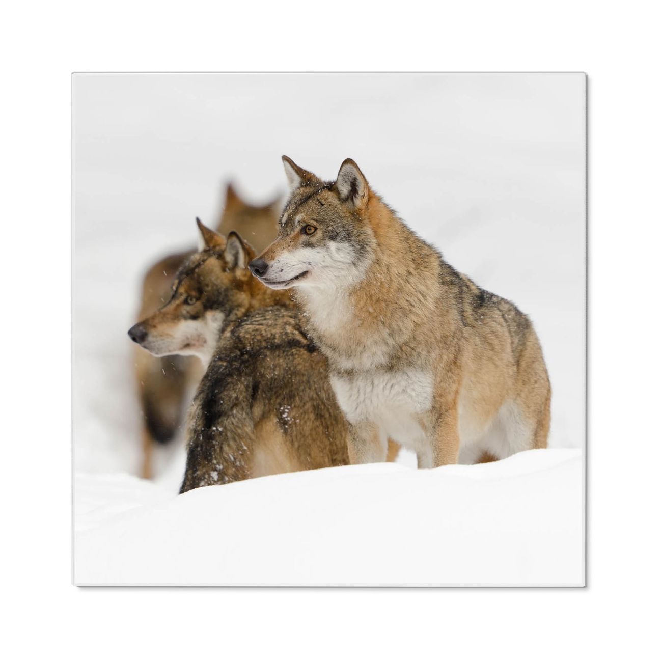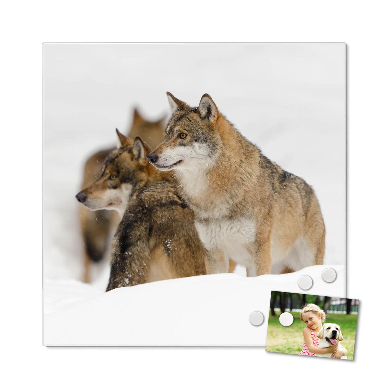 Motiv Wölfe Nr. 10432 Größe: 50x50x2cm BxHxT Gewicht: ca. 1,5 kg Material: Stahl weiß lackiert, Premiumfolie mit Schutzlaminat Magnete: für Dekomagnete geeignet beschreibbar: Nein Format: Quadratisch Zubehör: 4 Magnete, Schrauben und Dübel