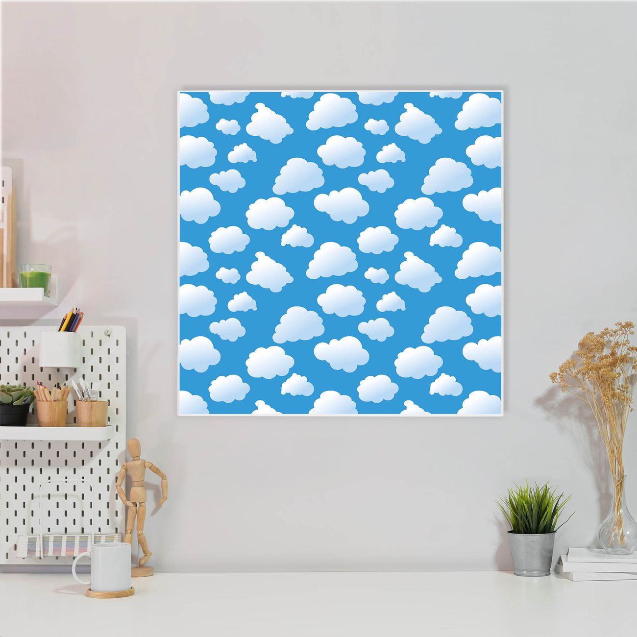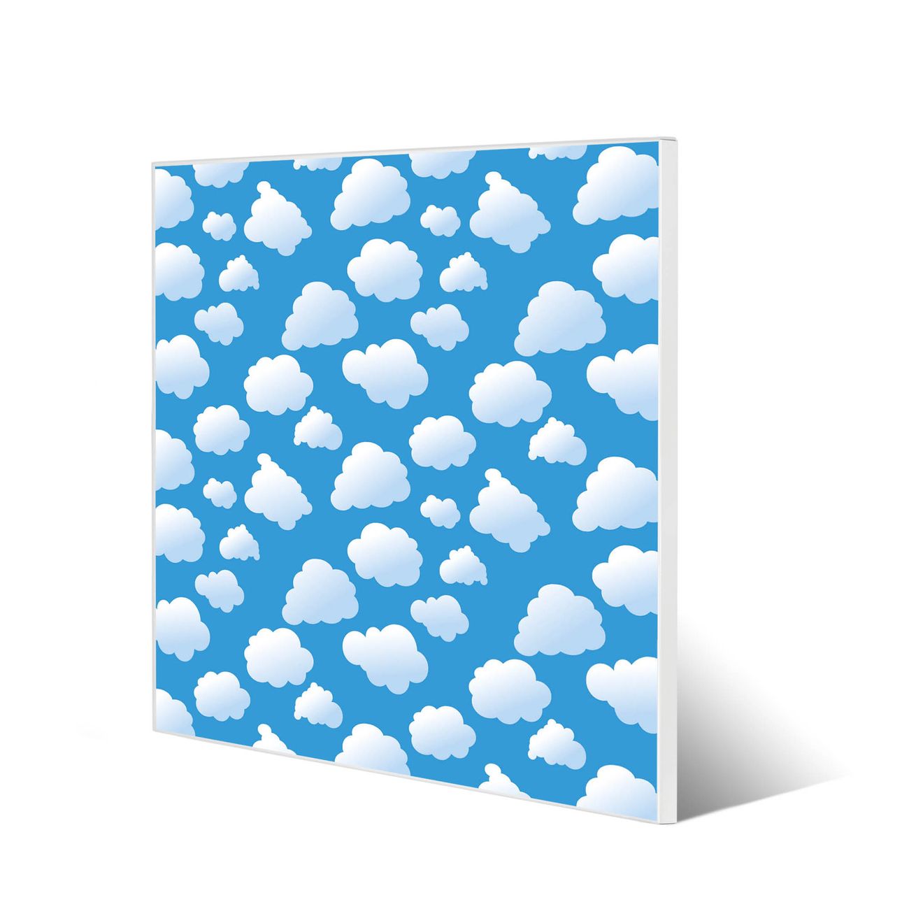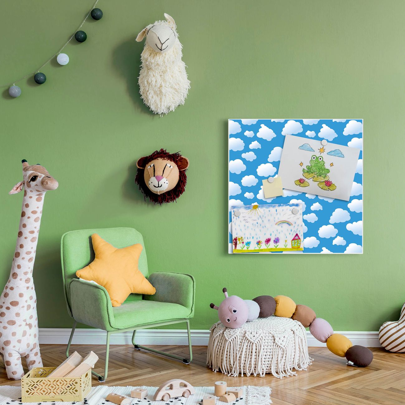 Motiv Wölkchen Nr. 10055 Größe: 50x50x2cm BxHxT Gewicht: ca. 1,5 kg Material: Stahl weiß lackiert, Premiumfolie mit Schutzlaminat Magnete: für Dekomagnete geeignet beschreibbar: Nein Format: Quadratisch Zubehör: 4 Magnete, Schrauben und Dübel