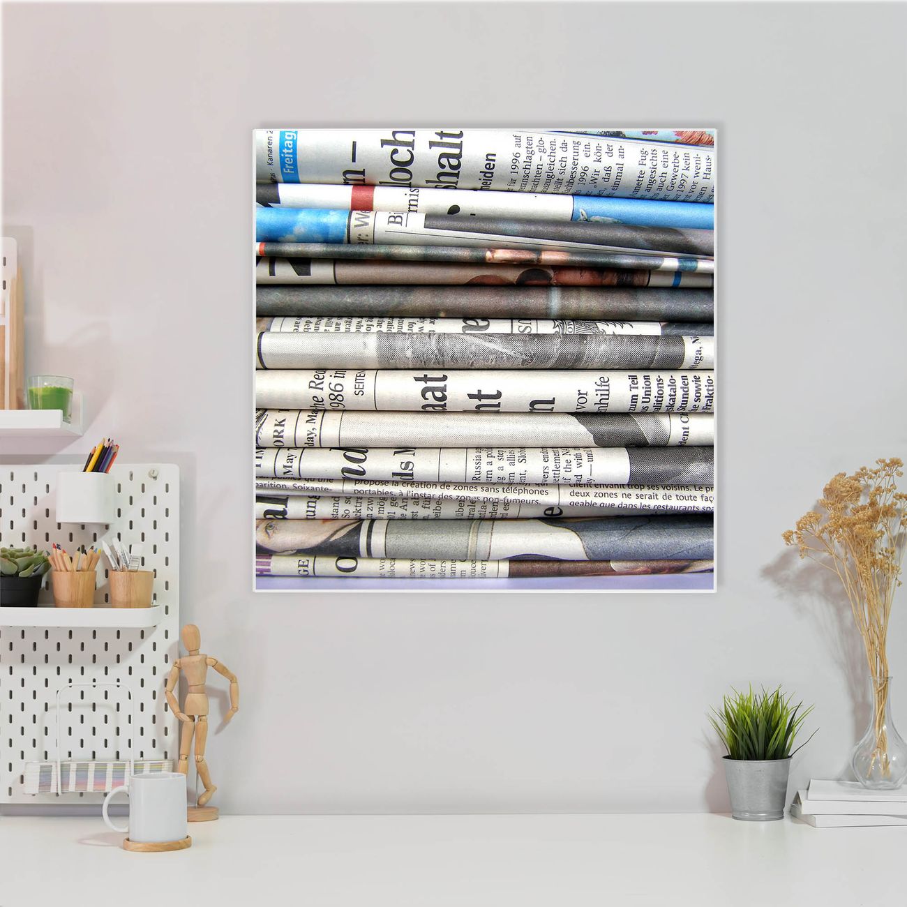Motiv Zeitungen Nr. 10039 Größe: 50x50x2cm BxHxT Gewicht: ca. 1,5 kg Material: Stahl weiß lackiert, Premiumfolie mit Schutzlaminat Magnete: für Dekomagnete geeignet beschreibbar: Nein Format: Quadratisch Zubehör: 4 Magnete, Schrauben und Dübel