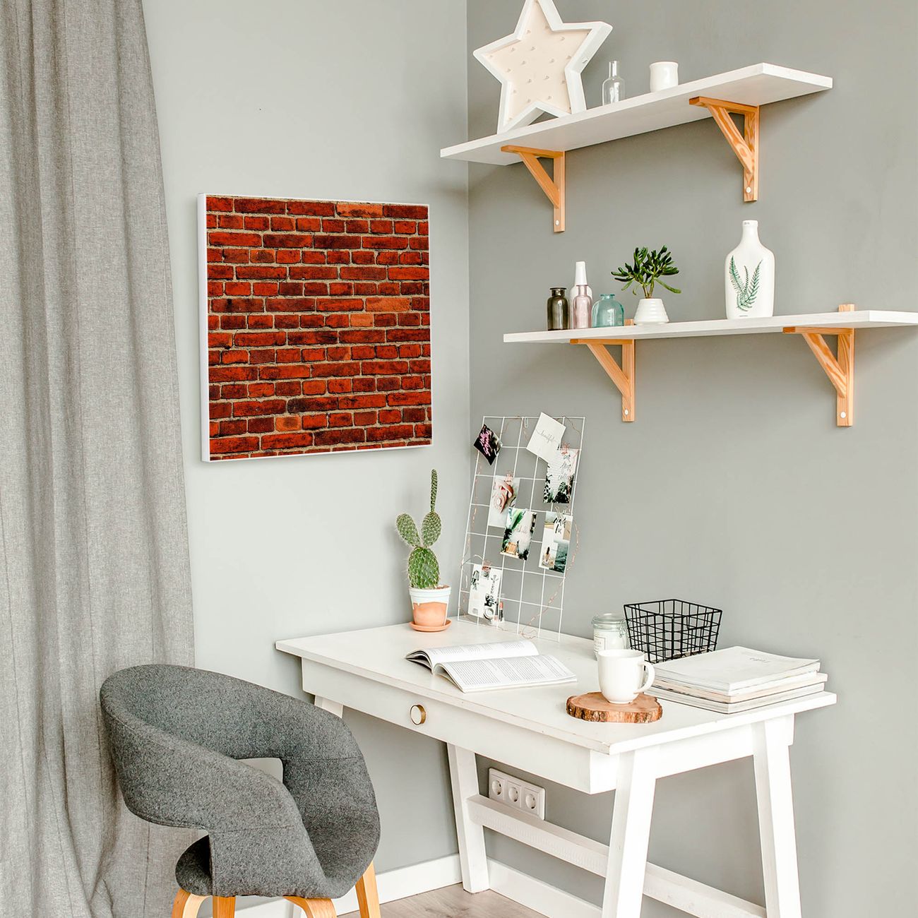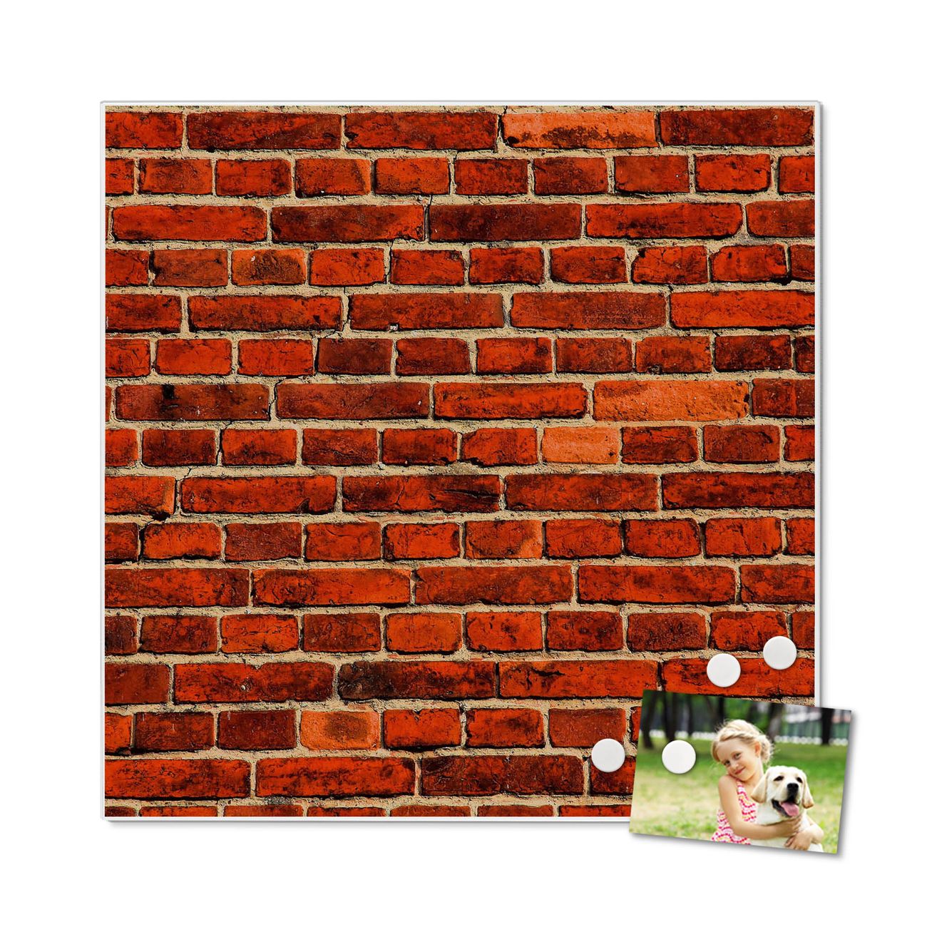Motiv Ziegelwand Nr. 10099 Größe: 50x50x2cm BxHxT Gewicht: ca. 1,5 kg Material: Stahl weiß lackiert, Premiumfolie mit Schutzlaminat Magnete: für Dekomagnete geeignet beschreibbar: Nein Format: Quadratisch Zubehör: 4 Magnete, Schrauben und Dübel