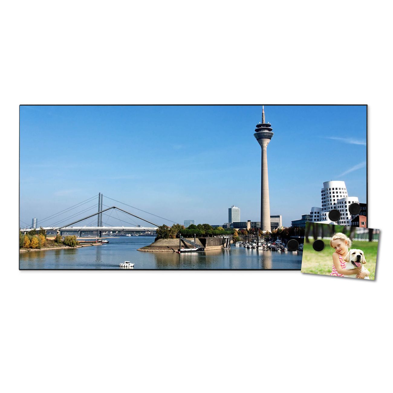 Motiv Düsseldorf Nr. 10195 Größe: 78x37x2cm BxHxT Gewicht: ca. 2,10 kg Material: Stahlblech schwarz, Premiumfolie mit Schutzlaminat Magnete: für Dekomagnete geeignet beschreibbar: Nein Format: Querformat Zubehör: 4 Magnete, Schrauben und Dübel