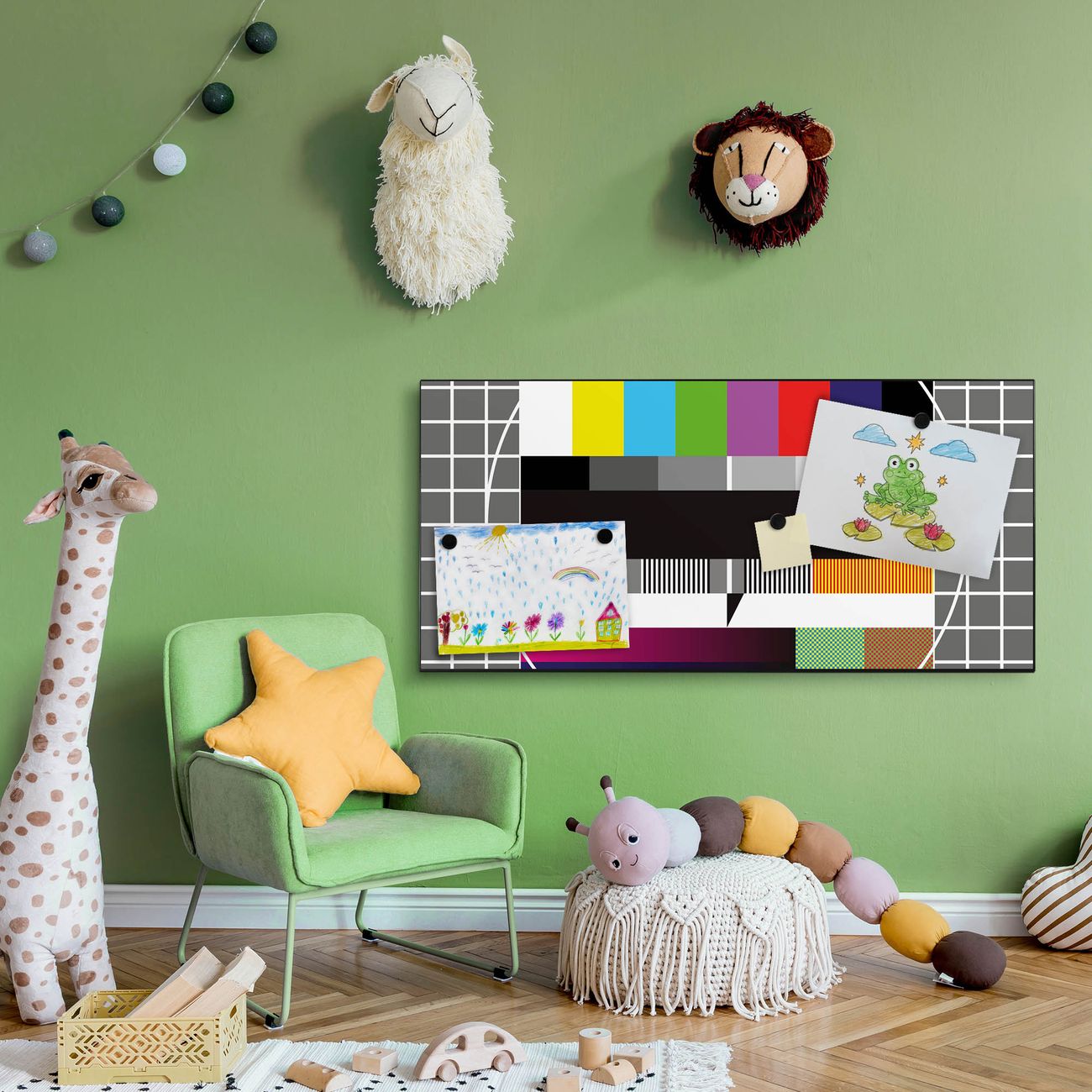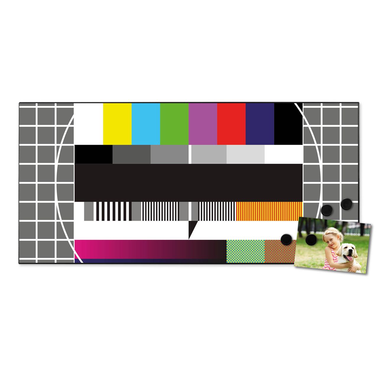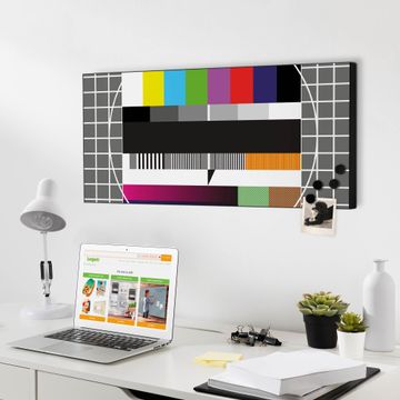 FUNKTION:  Die banjado Magnettafel mit Motiv Testbild Motiv bringt Ordnung in Ihr Zettelchaos. Fotos, Termine, Notizen oder Rezepte lassen Sich hier stilvoll mit Magneten ordnen, Sie behalten alles im Blick. An der Design Magnetwand halten alle handesüblichen Magnete. DESIGN:  Die Metall Pinnwand mit dem Motiv Motiv Testbild ist ein eleganter Begleiter im Alltag. Mit dieser Magnettafel haben Sie auch ohne Notizen und Magnete ein schönes Dekoelement. Das Format bietet Ihnen ausreichend Platz um alle wichtigen Informationen im Blick zu behalten. DETAILS: Die magnetische Pinnwand besteht aus silber-grau, weiß oder schwarz lackiertem Stahl. Sie hat eine Größe von 78cm x 37cm. Es befinden sich auf der Rückseite vorgefertigte Löcher die eine schnelle und unkomplizierte Anbringung ermöglichen. Das Motiv ist mit einem seidenmatten Laminat versehen und schützt so zusätzlich vor Kratzern. NUTZEN:  Sie können diese Magnettafel wunderbar als Wandbild nutzen, es halten alle handelsüblichen Magneten daran. Das Memoboard ist mit einem feuchten Lappen oder Schwamm abwischbar. Sie finden bei uns eine große Auswahl an passenden Magneten. BANJADO:  Wir sind ein kleines Team aus dem Herzen von Sachsen. Wir fertigen alle Artikel von Hand für Sie an, Sie erhalten keine preiswerte Importware. Auf Wunsch können Sie auch Ihr eigenes Foto auf die Magnettafel aufbringen, schreiben Sie uns an. Herzlichst, Ihr banjado-Team