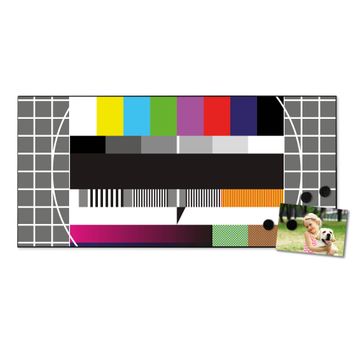 Motiv Testbild Nr. 10100 Größe: 78x37x2cm BxHxT Gewicht: ca. 2,10 kg Material: Stahlblech schwarz, Premiumfolie mit Schutzlaminat Magnete: für Dekomagnete geeignet beschreibbar: Nein Format: Querformat Zubehör: 4 Magnete, Schrauben und Dübel
