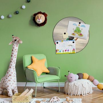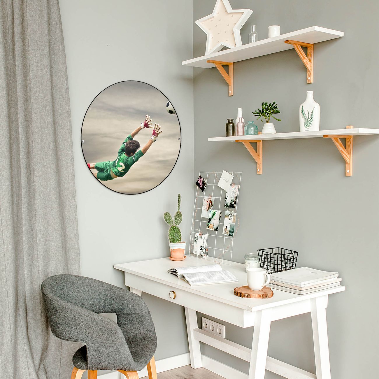 FUNKTION / DESIGN Die banjado Magnettafel mit dem Motiv Motiv Abgewehrt bringt Ordnung in Ihr Zettelchaos. Fotos, Termine, Notizen oder Rezepte lassen Sich hier stilvoll mit Magneten ordnen, Sie behalten alles im Blick. Die Design Magnetwand ist beschreibbar und wieder abwischbar. Mit dieser Pinnwand haben Sie auch ohne Notizen und Magneten ein schönes Dekoelement. Das Format bietet Ihnen ausreichend Platz um alle wichtigen Informationen im Blick zu behalten. DETAILS / NUTZEN Die magnetische Metall Pinnwand besteht aus schwarz lackiertem Stahl. Sie hat einen Durchmesser von 47cm. Es befinden sich an den Seiten zwei vorgefertigte Löcher die eine schnelle und unkomplizierte Anbringung ermöglichen. Das Motiv ist mit einem seidenmatten Laminat versehen und schützt so zusätzlich vor Kratzern. Es halten alle handelsüblichen Magneten daran. Wir sind ein kleines Team aus dem Herzen von Sachsen. Wir fertigen alle Artikel von Hand für Sie an, Sie erhalten keine preiswerte Importware. Auf Wunsch können Sie auch Ihr eigenes Foto auf die Magnettafel aufbringen, schreiben Sie uns an.