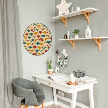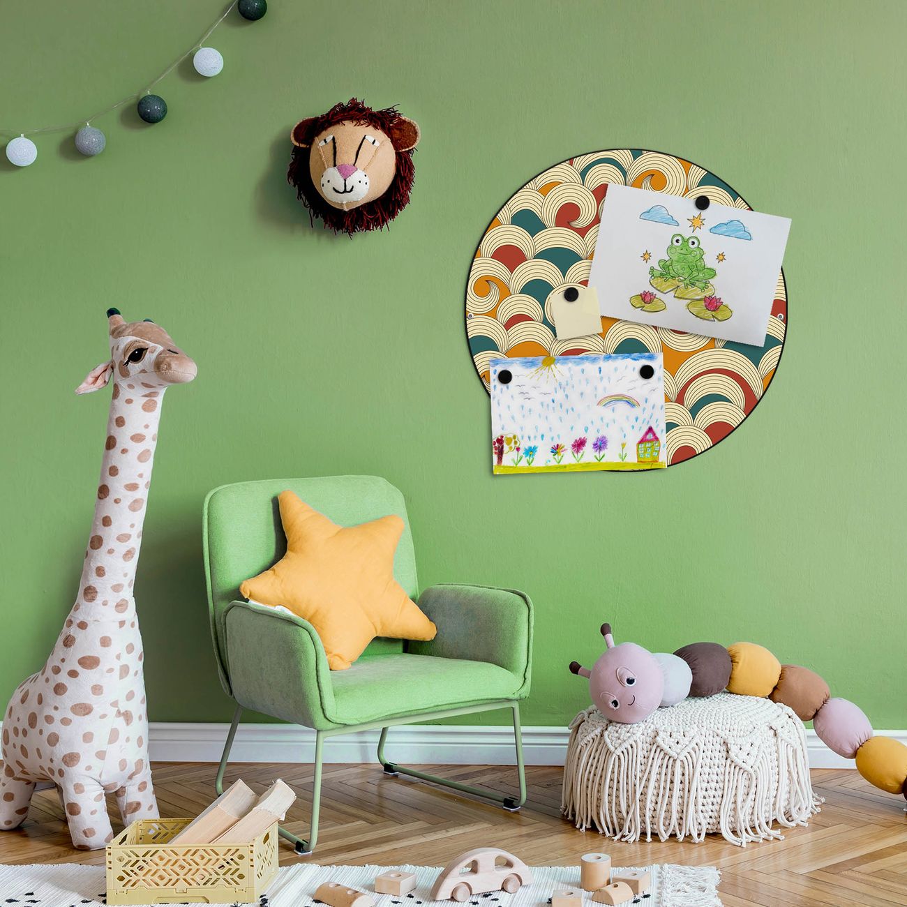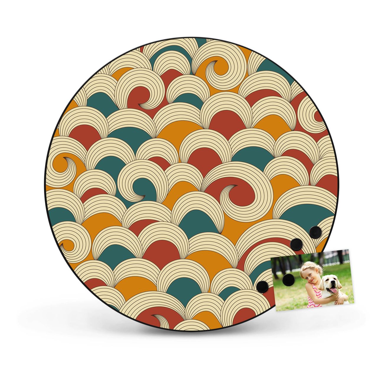 FUNKTION / DESIGN Die banjado Magnettafel mit dem Motiv Motiv Abstract Waves bringt Ordnung in Ihr Zettelchaos. Fotos, Termine, Notizen oder Rezepte lassen Sich hier stilvoll mit Magneten ordnen, Sie behalten alles im Blick. Die Design Magnetwand ist beschreibbar und wieder abwischbar. Mit dieser Pinnwand haben Sie auch ohne Notizen und Magneten ein schönes Dekoelement. Das Format bietet Ihnen ausreichend Platz um alle wichtigen Informationen im Blick zu behalten. DETAILS / NUTZEN Die magnetische Metall Pinnwand besteht aus schwarz lackiertem Stahl. Sie hat einen Durchmesser von 47cm. Es befinden sich an den Seiten zwei vorgefertigte Löcher die eine schnelle und unkomplizierte Anbringung ermöglichen. Das Motiv ist mit einem seidenmatten Laminat versehen und schützt so zusätzlich vor Kratzern. Es halten alle handelsüblichen Magneten daran. Wir sind ein kleines Team aus dem Herzen von Sachsen. Wir fertigen alle Artikel von Hand für Sie an, Sie erhalten keine preiswerte Importware. Auf Wunsch können Sie auch Ihr eigenes Foto auf die Magnettafel aufbringen, schreiben Sie uns an.